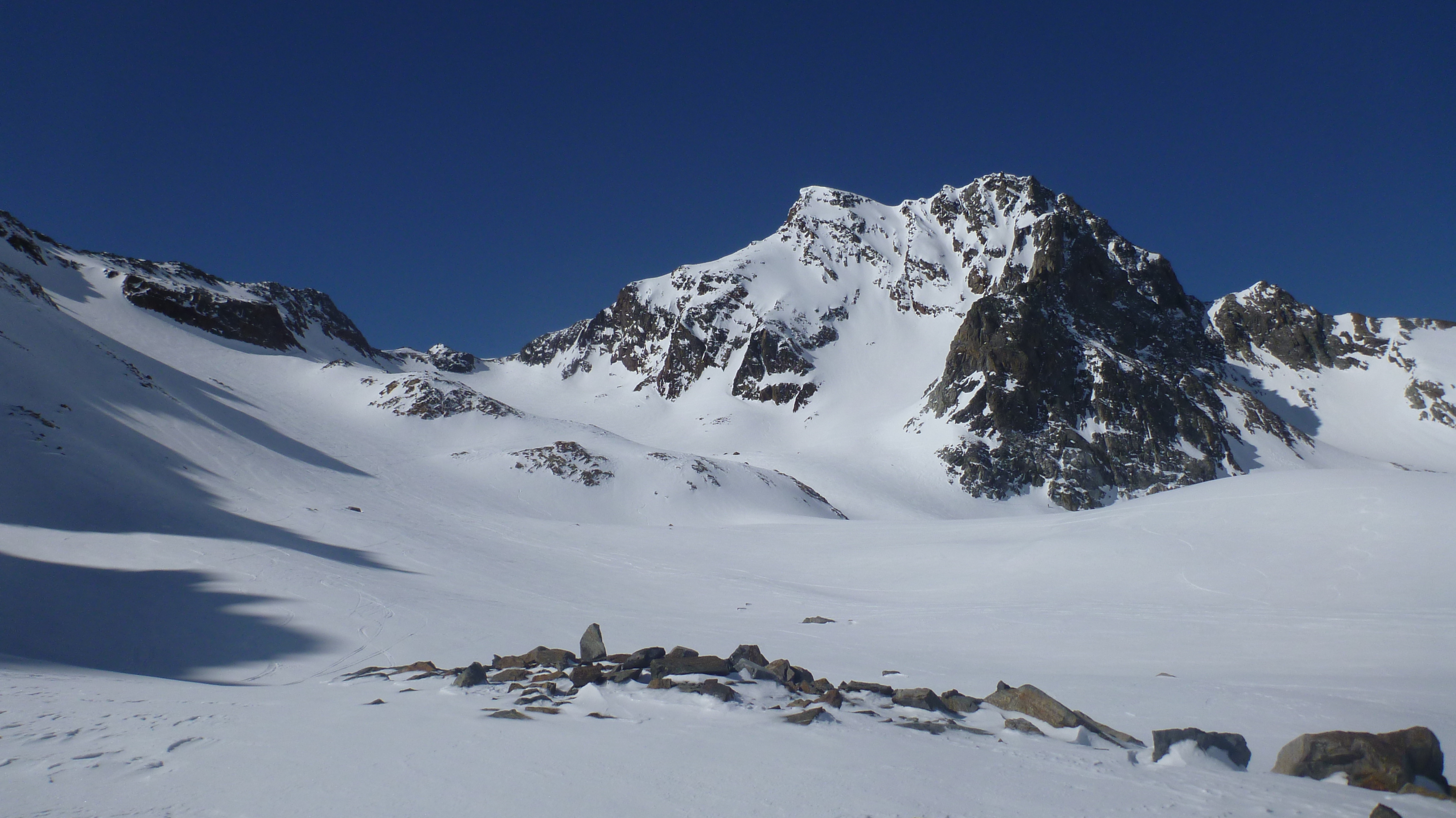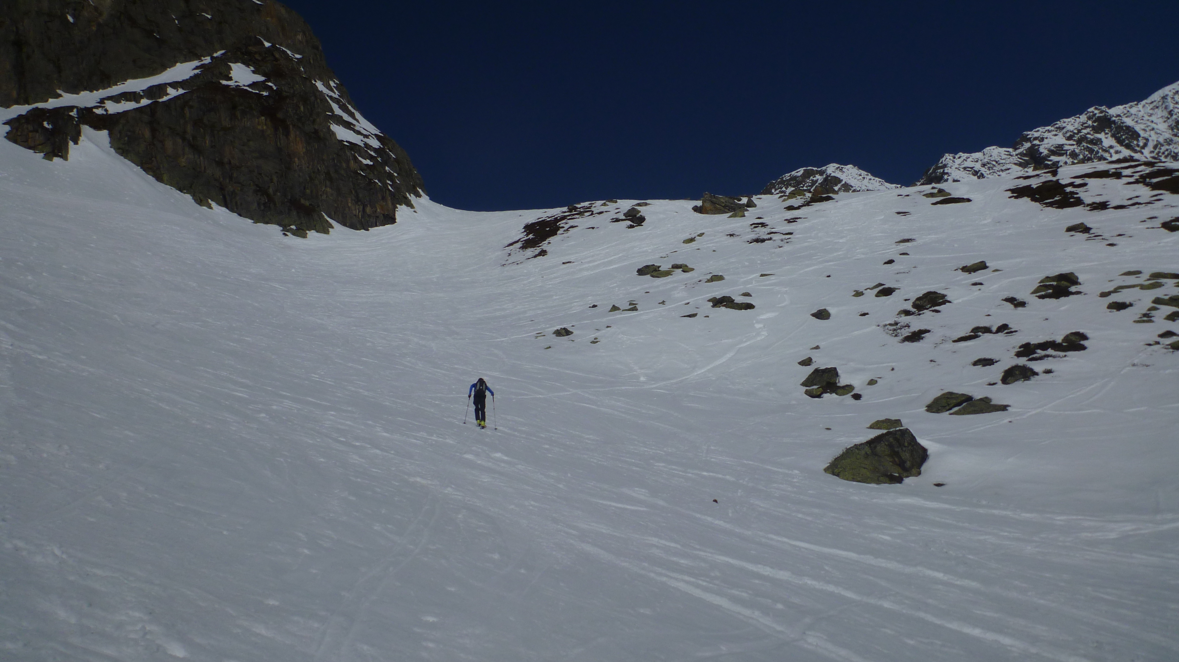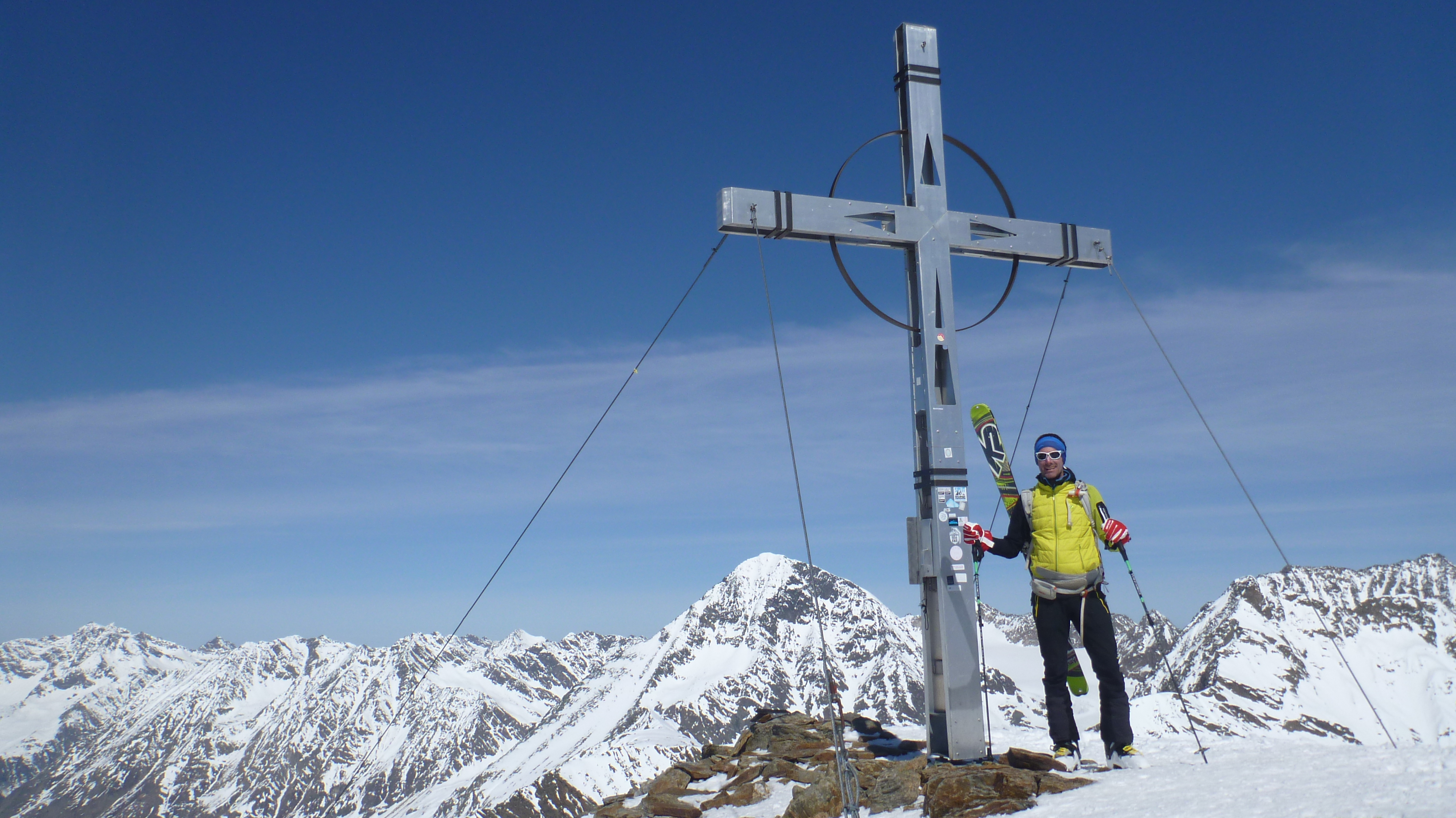 Sonstiges: Aufstieg vom PP zunächst durch die Wilde Grube, dann über Steilstufe in die Glamergrube wechselnd, flach weiter, dann über steileren Hang leicht links aufwärts, von dort auf den Daunkogelferner und über Schlusshang zum Daunjoch. Von dort noch kurz bis zum Skidepot und über guten Stapfschnee aufwärts zum Gipfel.