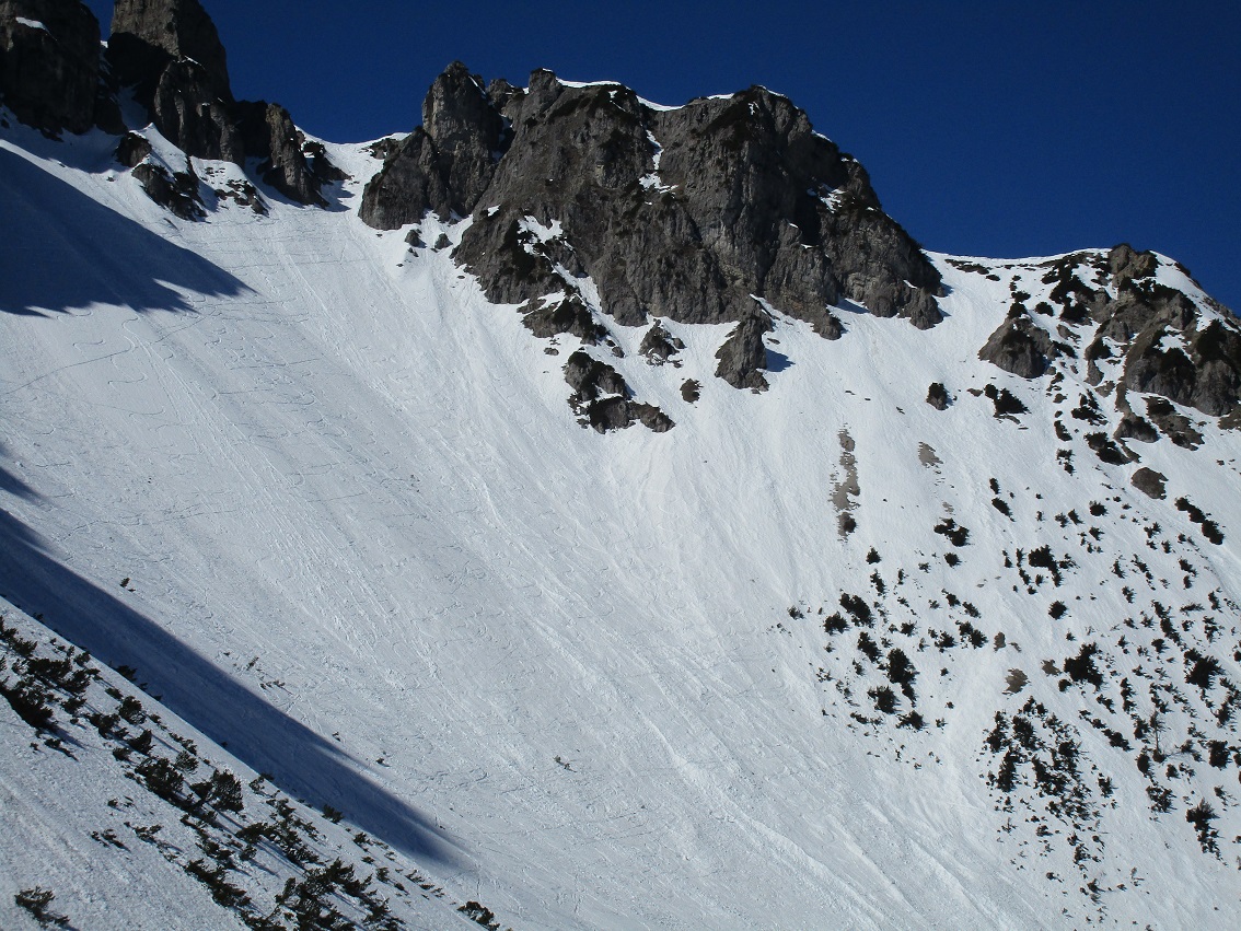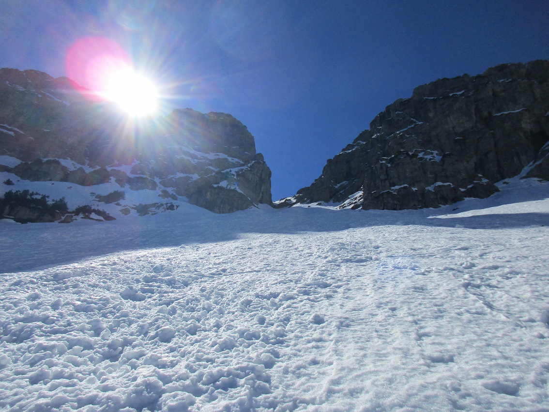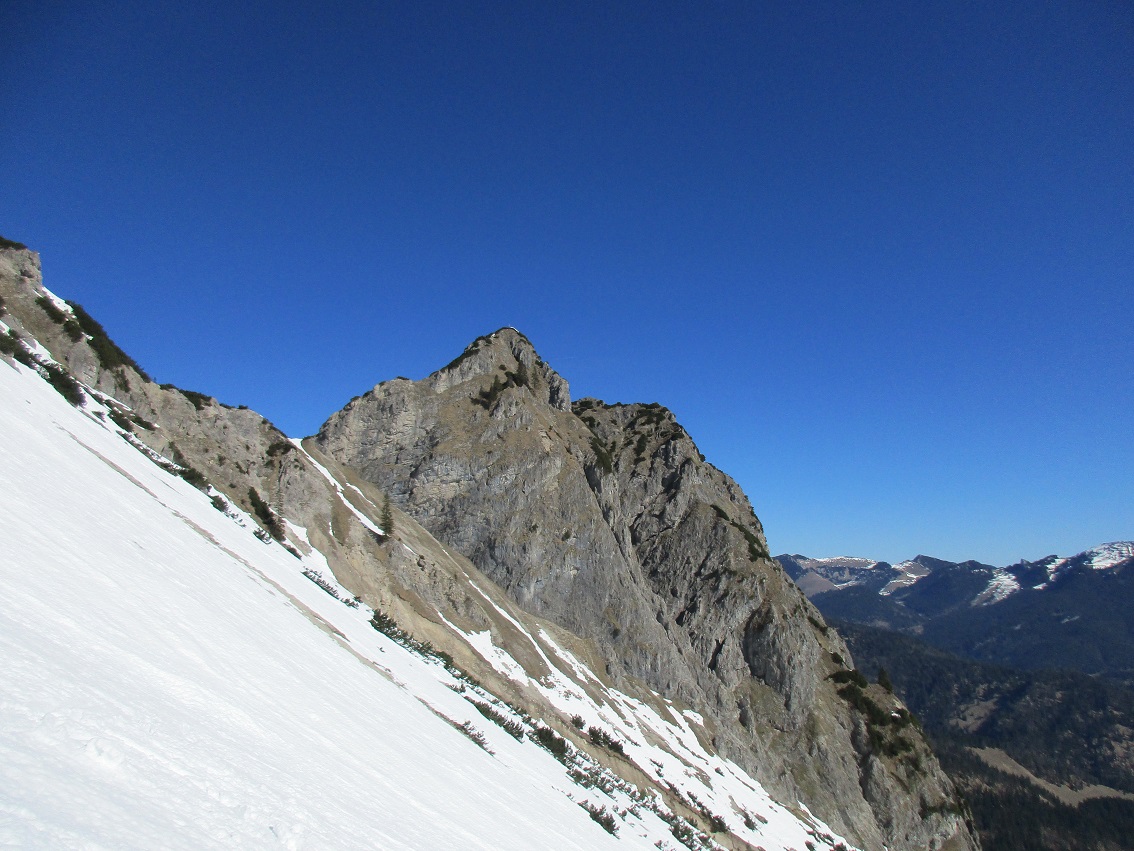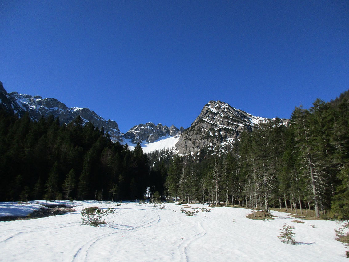 Tourenverhältnisse: Mautstraße in die Valepp für PKW noch gesperrt / Mit Radl optimal : schnee - und eisfrei / ab ca. 1000 m Schnee / im Schatten knüppelhart und eisig / in der Sonne firnig, später sulzig / teilweise recht verhaute Hänge