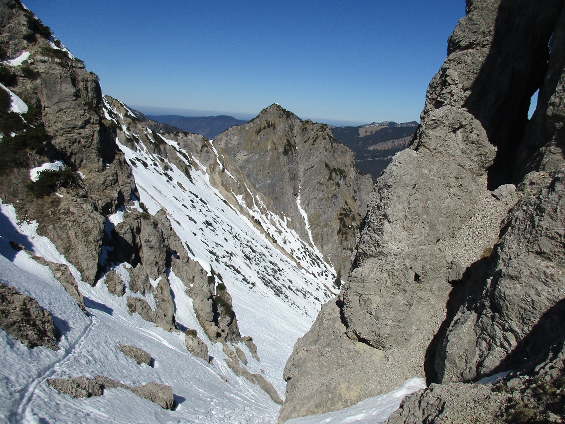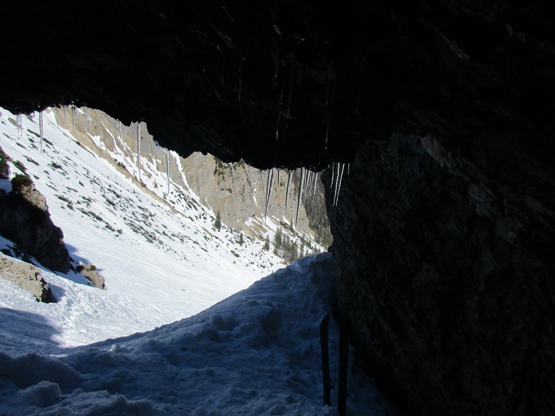 Gefahreneinschätzung: Harscheisen sinnvoll / Abrutsch/sturzgefahr / Felsloch am Tor frei aber eisig /
