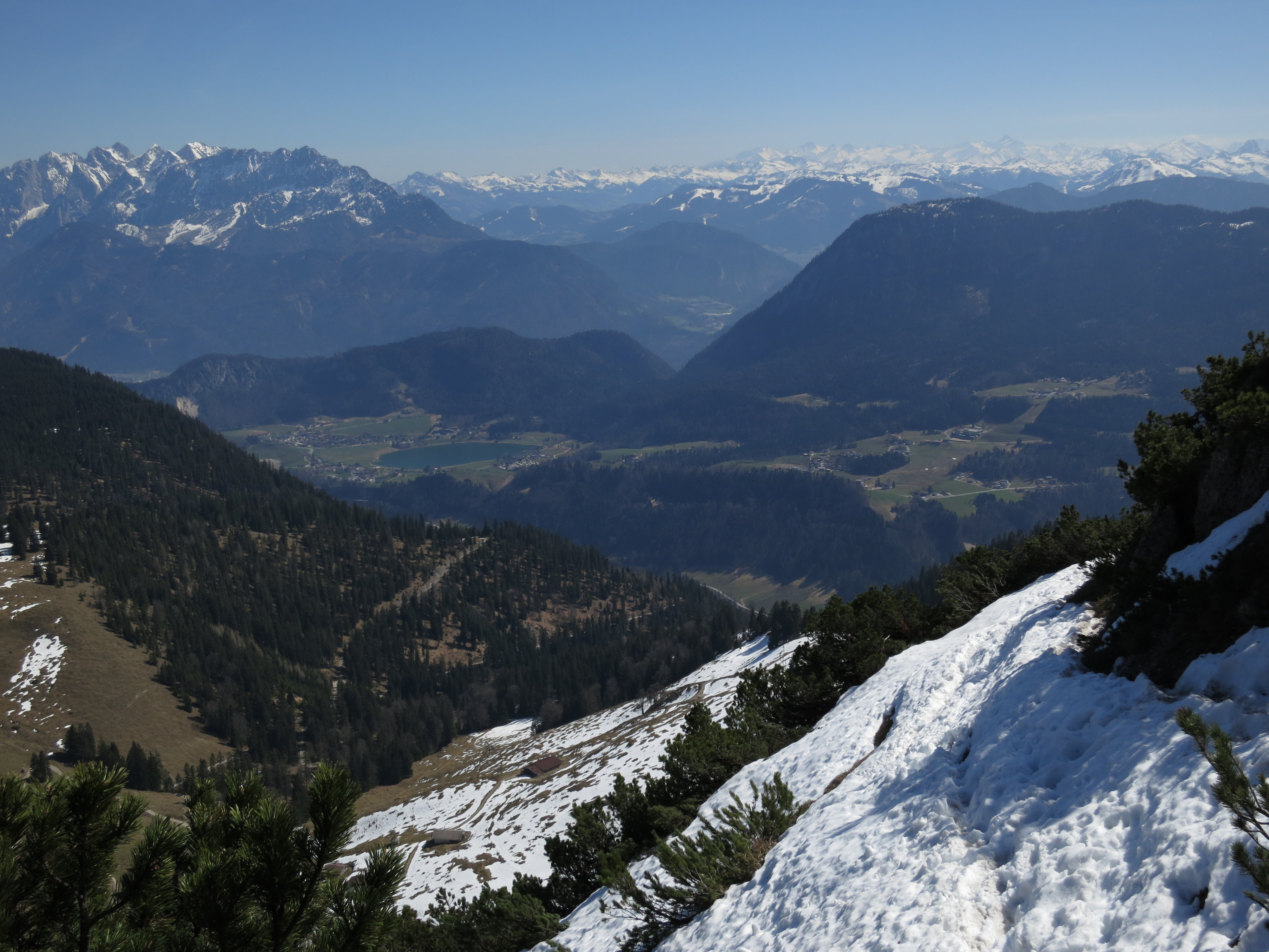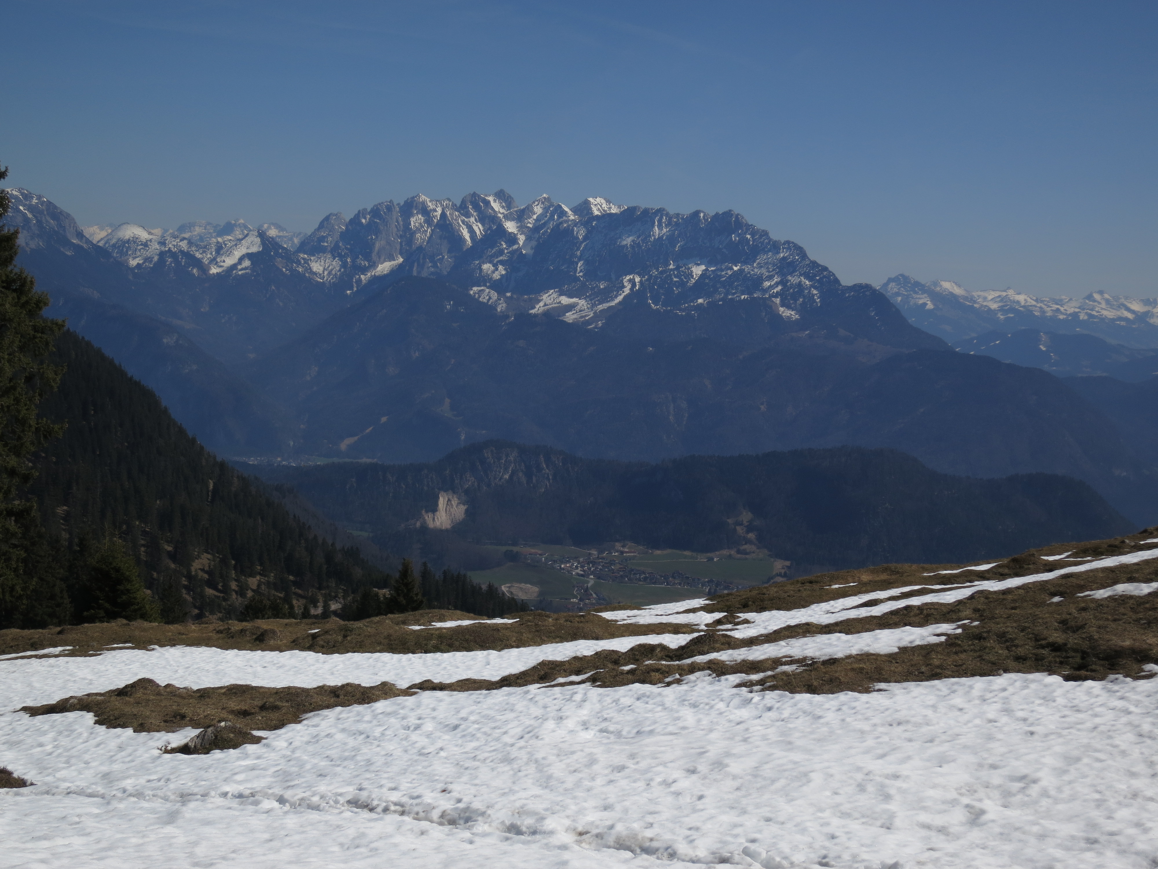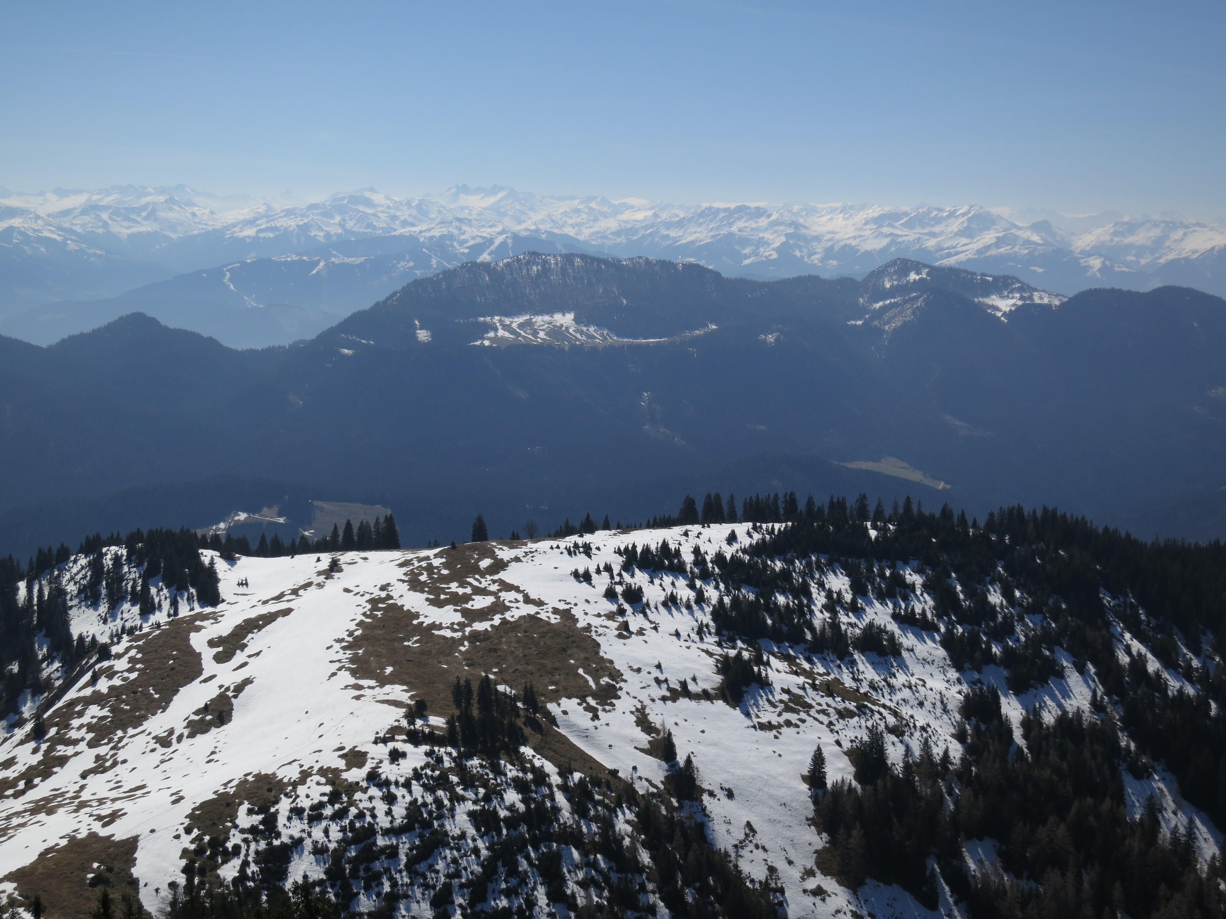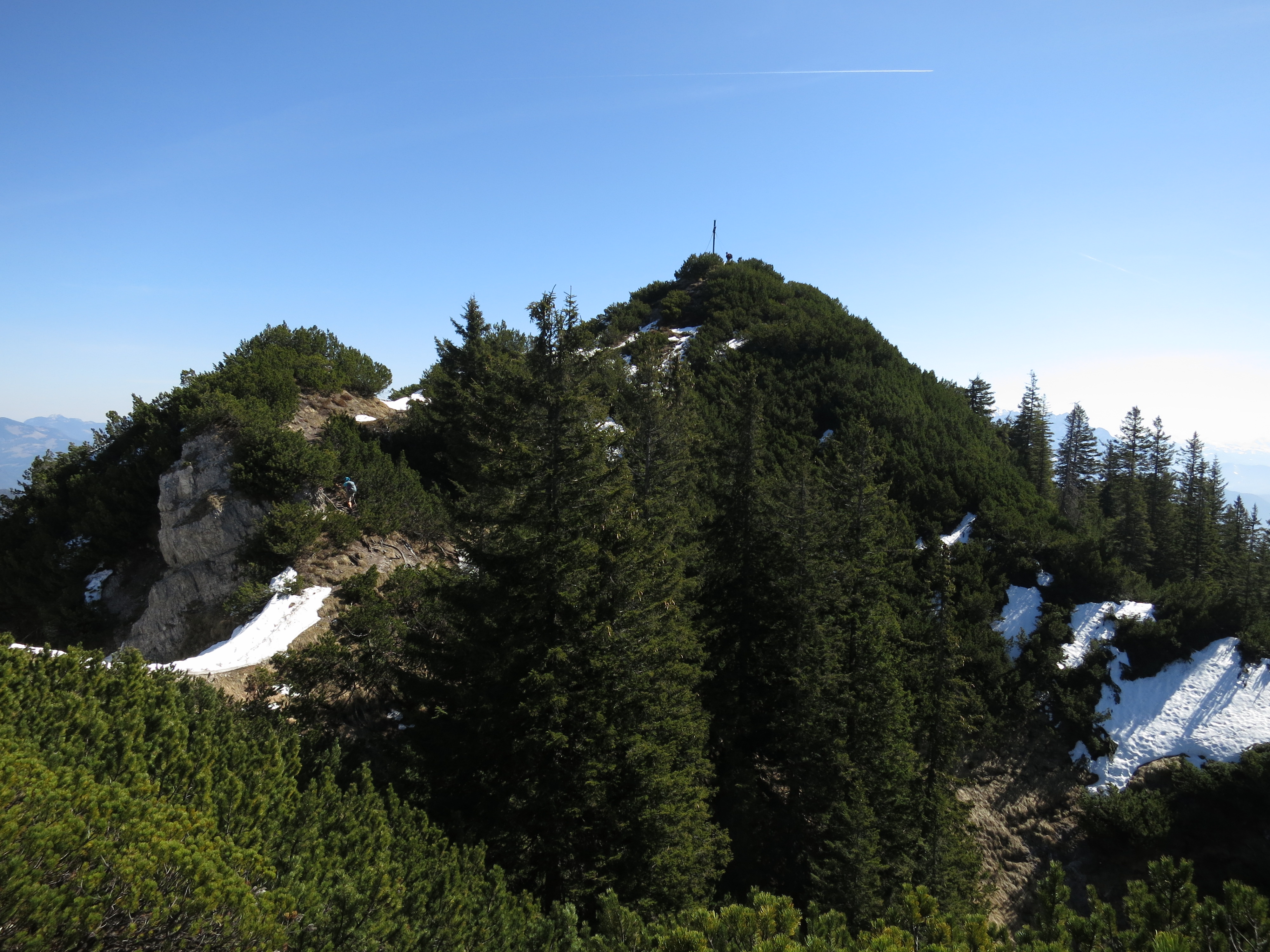 Tourenverhältnisse: Aufstieg bis zur Oberen Trockenbachalm (Mariandl-Alm) und dann links zum Nesselberg und weiter auf markiertem Steig zum Trainsjoch. Wege bis ca. 1500 m trocken und nicht batzig. Nennenswerte Schneereste ab ca. 1500 m; aber gute Stapfspur vorhanden. Abstieg über die Einsattelung zwischen Trainsjoch und Ascherjoch und dann westlich Richtung Mariandlalm. Kurz vor der Mariandlalm zeigt ein Wegweiser bergab Richtung Ursprung. Bis auf die ostseitige Querung kurz unterhalb des Gipfels kaum noch Schneereste; ab der Einsattelung sowieso aper und trocken. Insgesamt alles gut zu gehen. Heute wieder T-Shirt-Kaiserwetter und bei der Gipfelrast hat sogar der SW-Wind aufgehört.