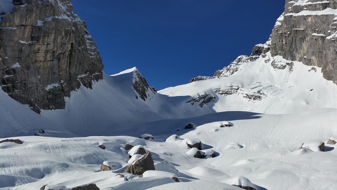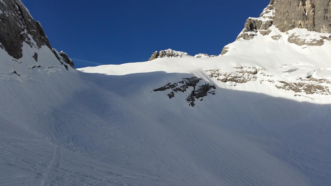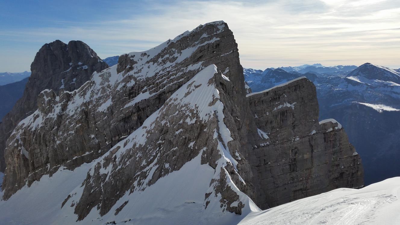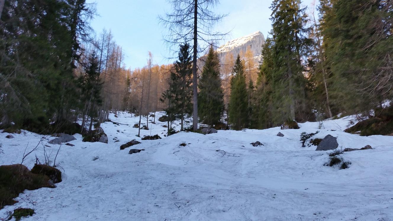 Tourenverhältnisse: Mit dem Radl zur Benzinkurve (1200m). Schnee beginnt am Anfang der Waldschneise (1300m). Aufstieg im Waldgürtel gut zu gehen (nicht eisig) . Im Kar pickelhart gefroren und rutschig zu gehen. Auf der Skischarte windstill und sehr warm. Abfahrt im oberen teil Firn. Im unteren teil vom Kar eisig. Waldgürtel mit zurückhaltender fahrweise noch gut fahrbar (Kein Sulz). Es kommen aber immer mehr Steine raus.