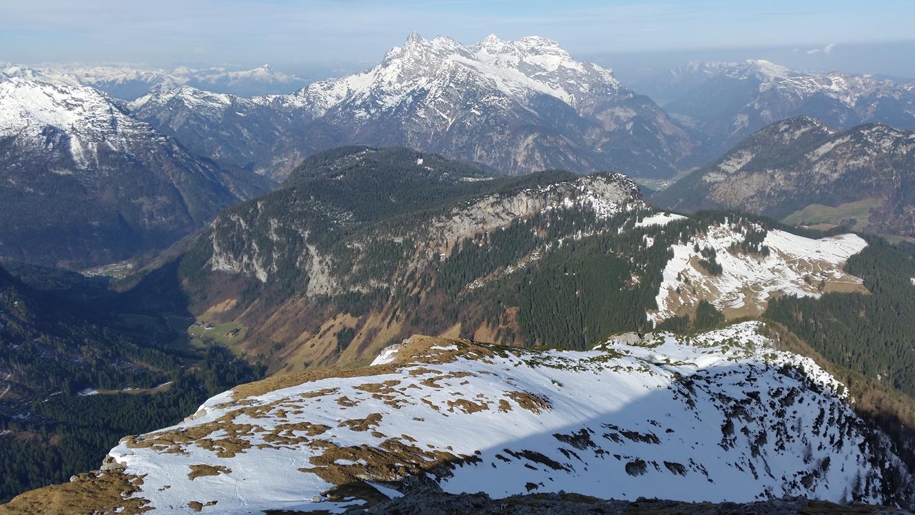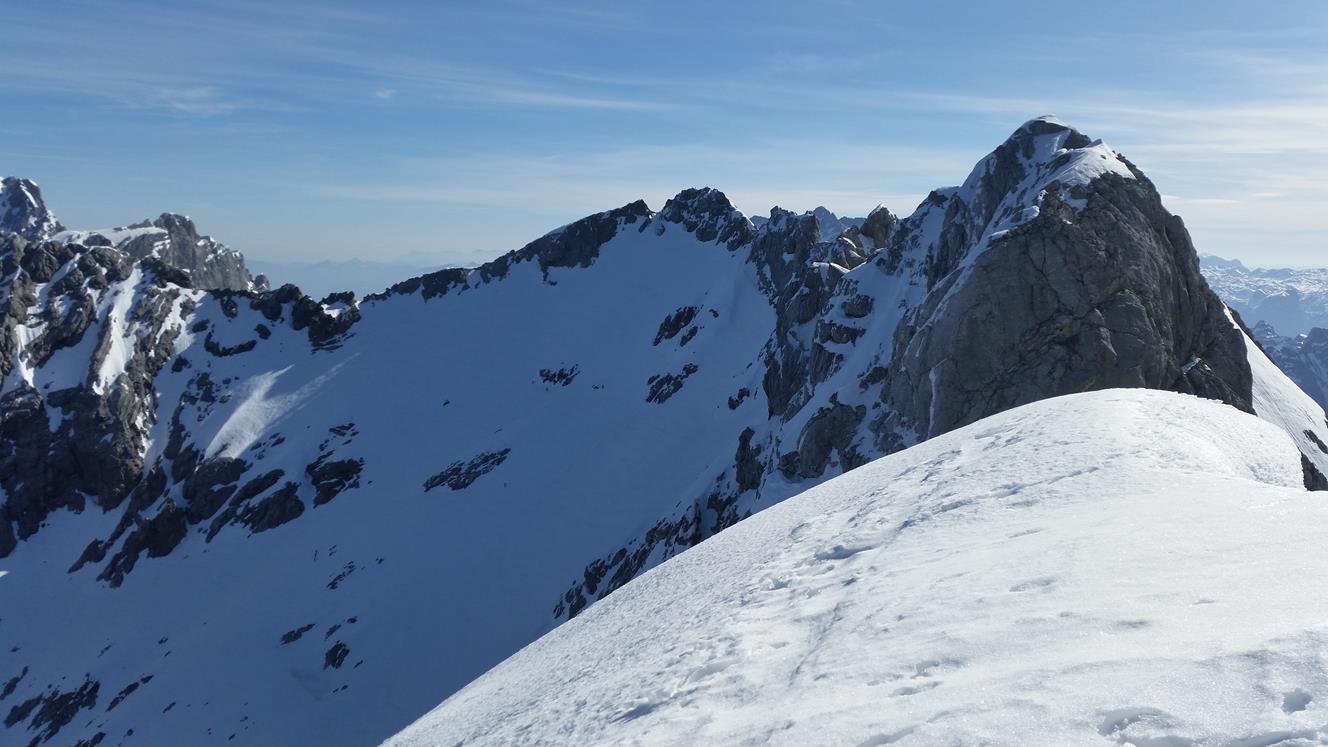 Blick zum Hocheis. Einige Tourengeher zu erkennen