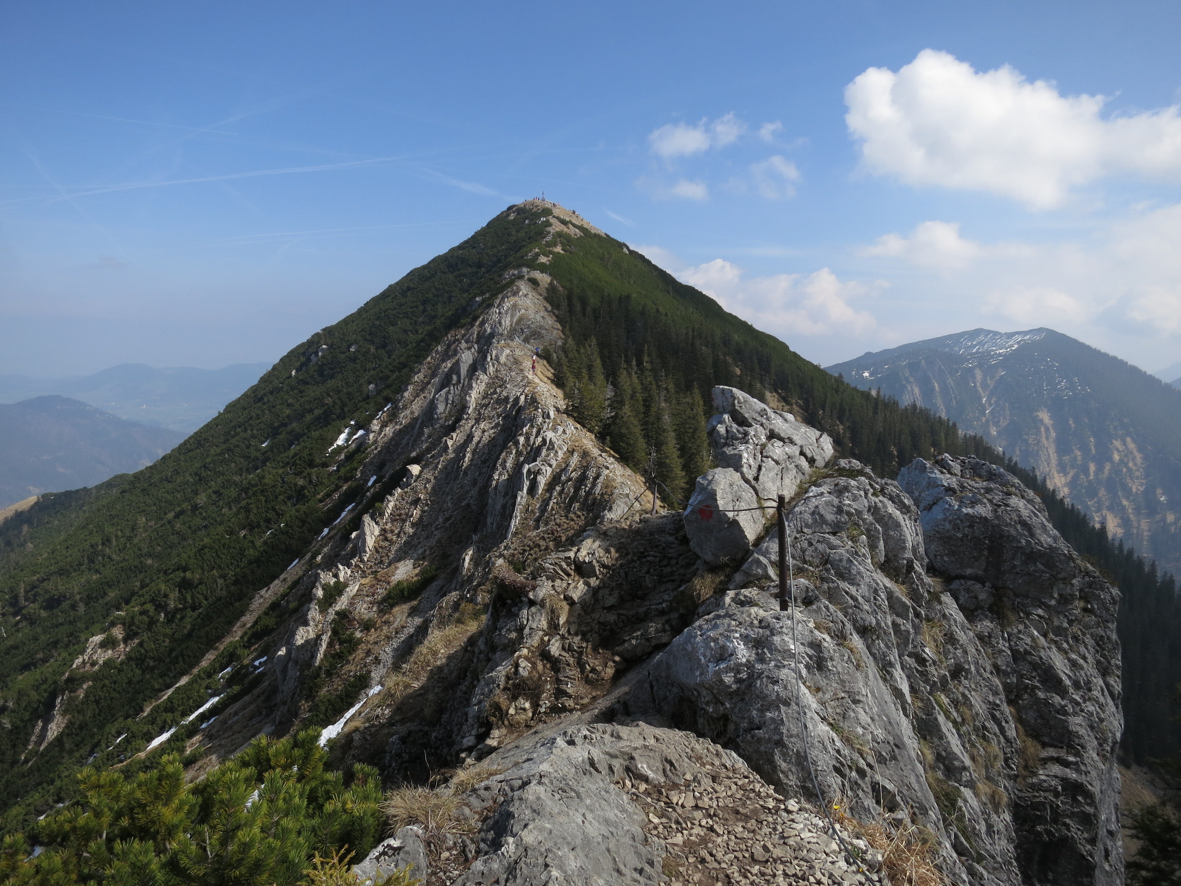 Tourenverhältnisse: Aufstieg über den unmarkierten SO-Grat ab Spitzingsattel, Abstieg über den SW-Grat zur Oberen Firstalm und weiter zum ausgewählten Parkplatz. Alle Wege waren schneefrei und meist trocken; auch im Abstieg kaum batzige Abschnitte: perfekte Verhältnisse.