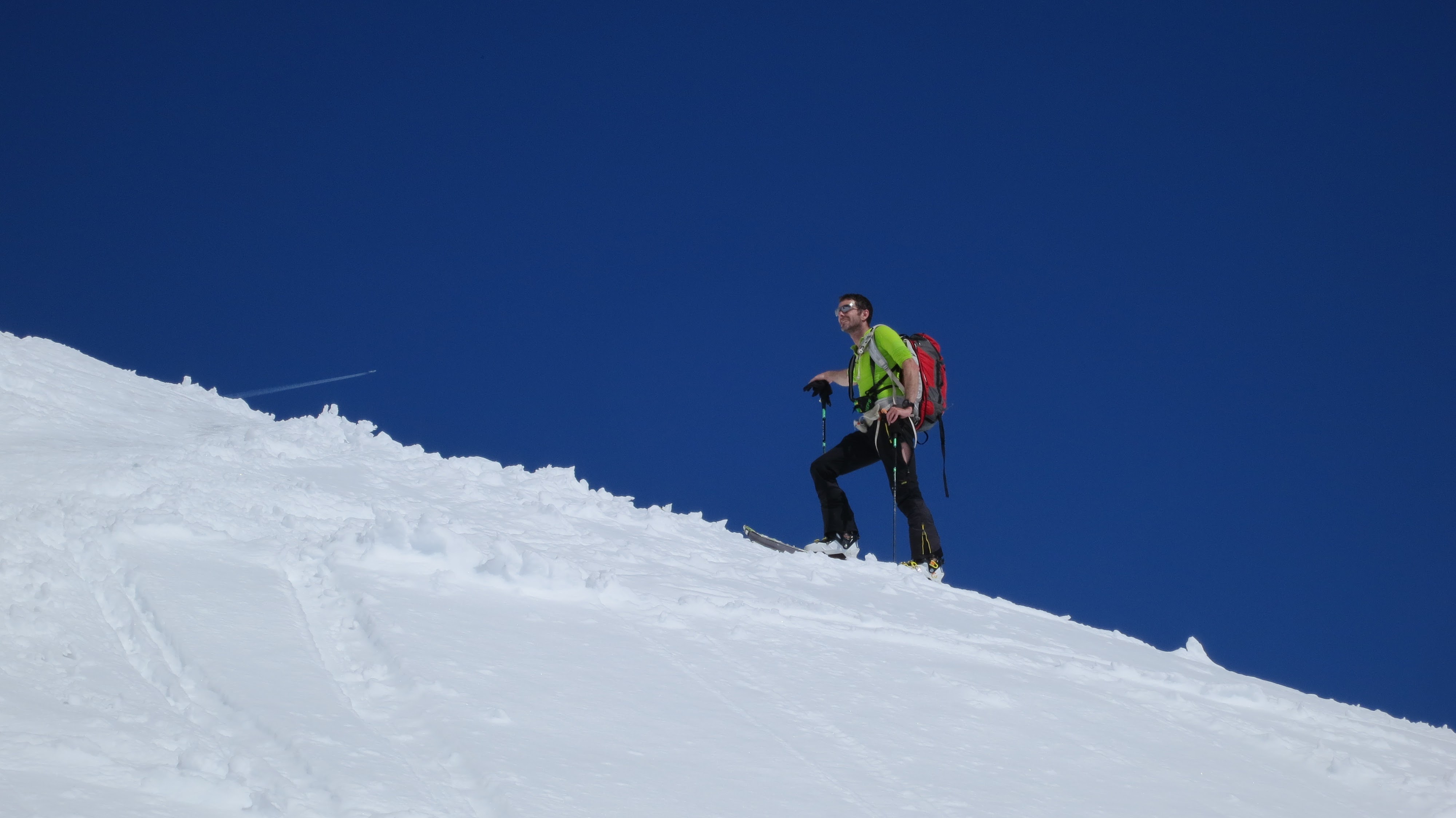 Tourenverhältnisse: Traumbedingungen, unten 250 hm zum Tragen, danach durchgängige Aufstiegsspur, Firn von oben bis unten ![]()
