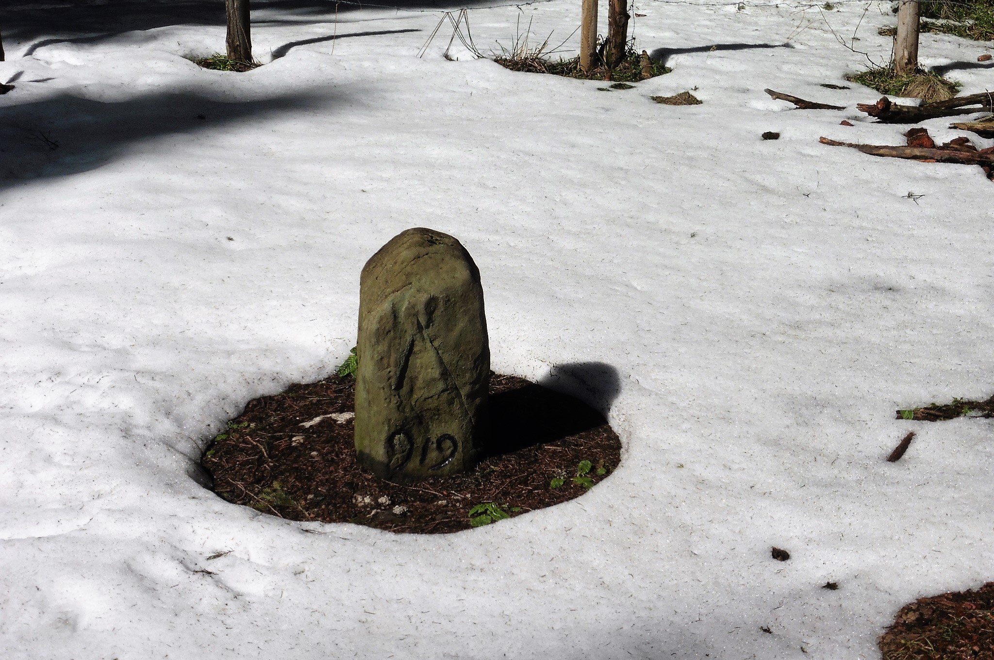 zu Bild 4: alter Grenzstein am Stallauer Kopf, der die Grenze zwischen Bad Tölz und dem Kloster Benediktbeuern markierte;