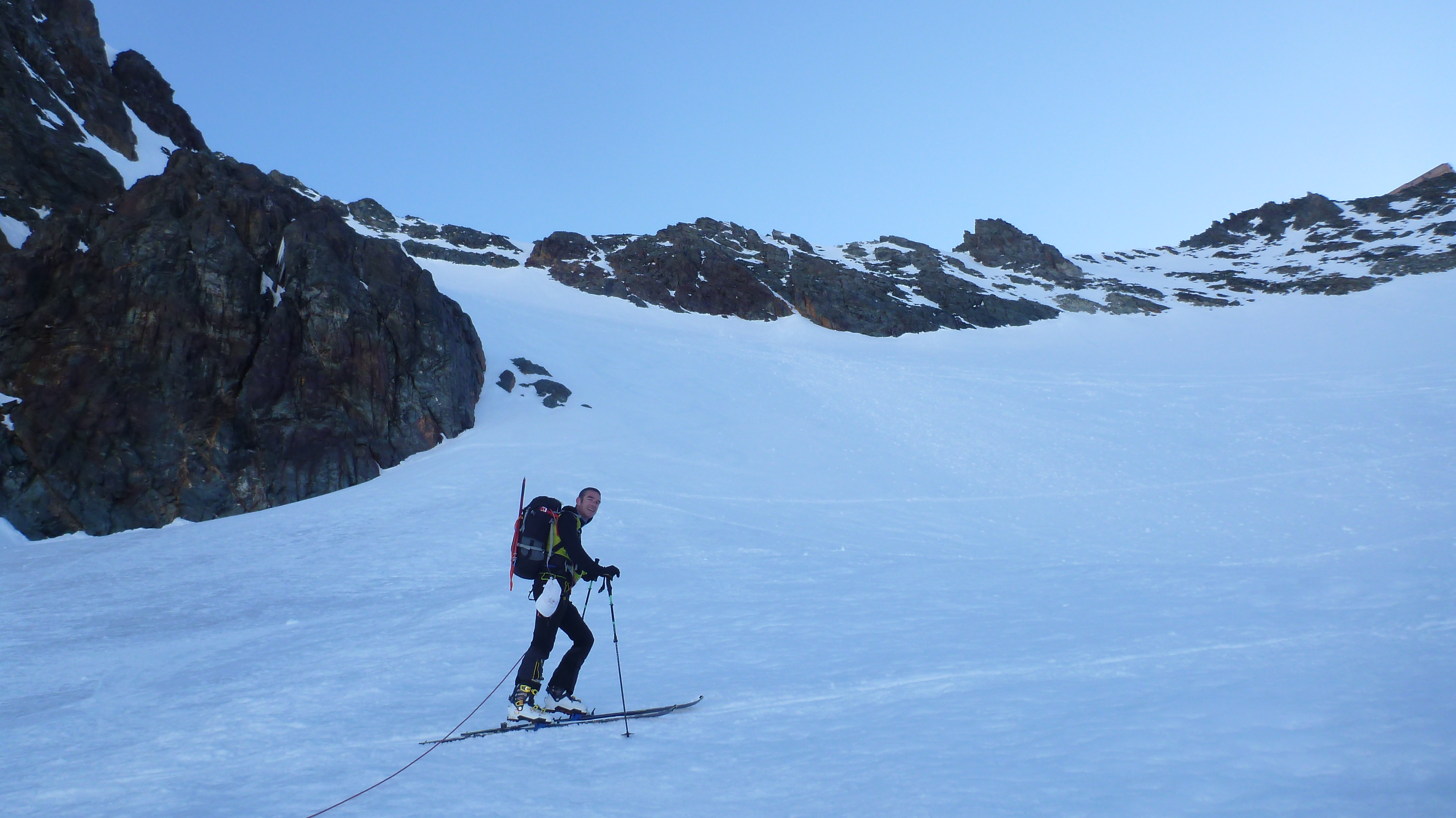 Gefahreneinschätzung: Absturzgefahr, Lawinengefahr eher gering