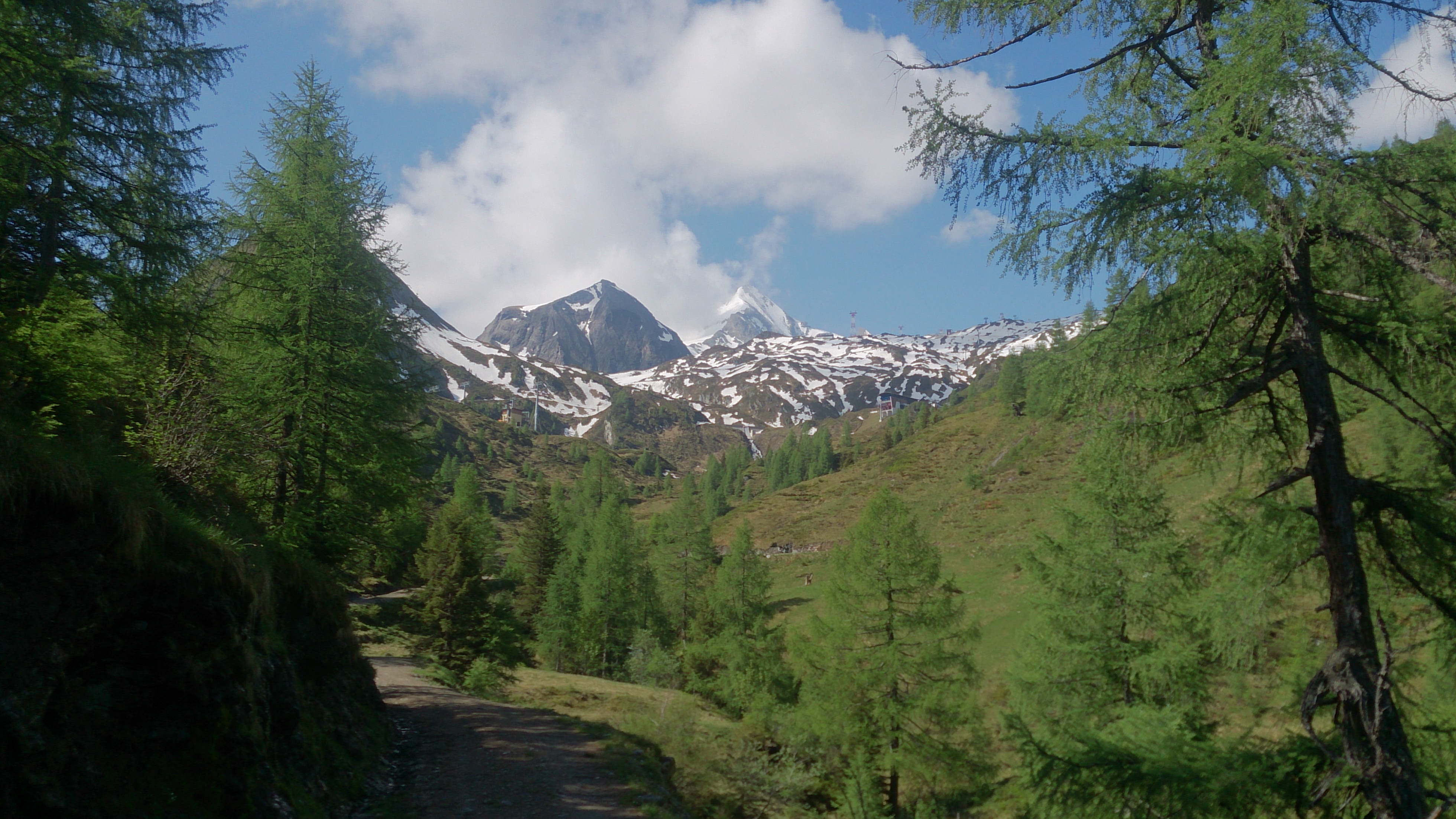 Abfahrt dann problemlos bis zum Langwiedboden. Für den Abstieg nutzte ich die Forststraße, zwar etwas gewundener und auch nicht so schön wie der Steig, aber nach der langen Tour war ein Abstiegsweg, wo man nicht aufpassen muss, willkommen. Der Steig und die Forststraße dienen der Kapruner Gletscherbahn im Sommer als MTB-Trail, also wird man vermutlich entsprechendes Downhill-Publikum "begrüßen" dürfen. Zur Zeit zum Glück noch gesperrt.