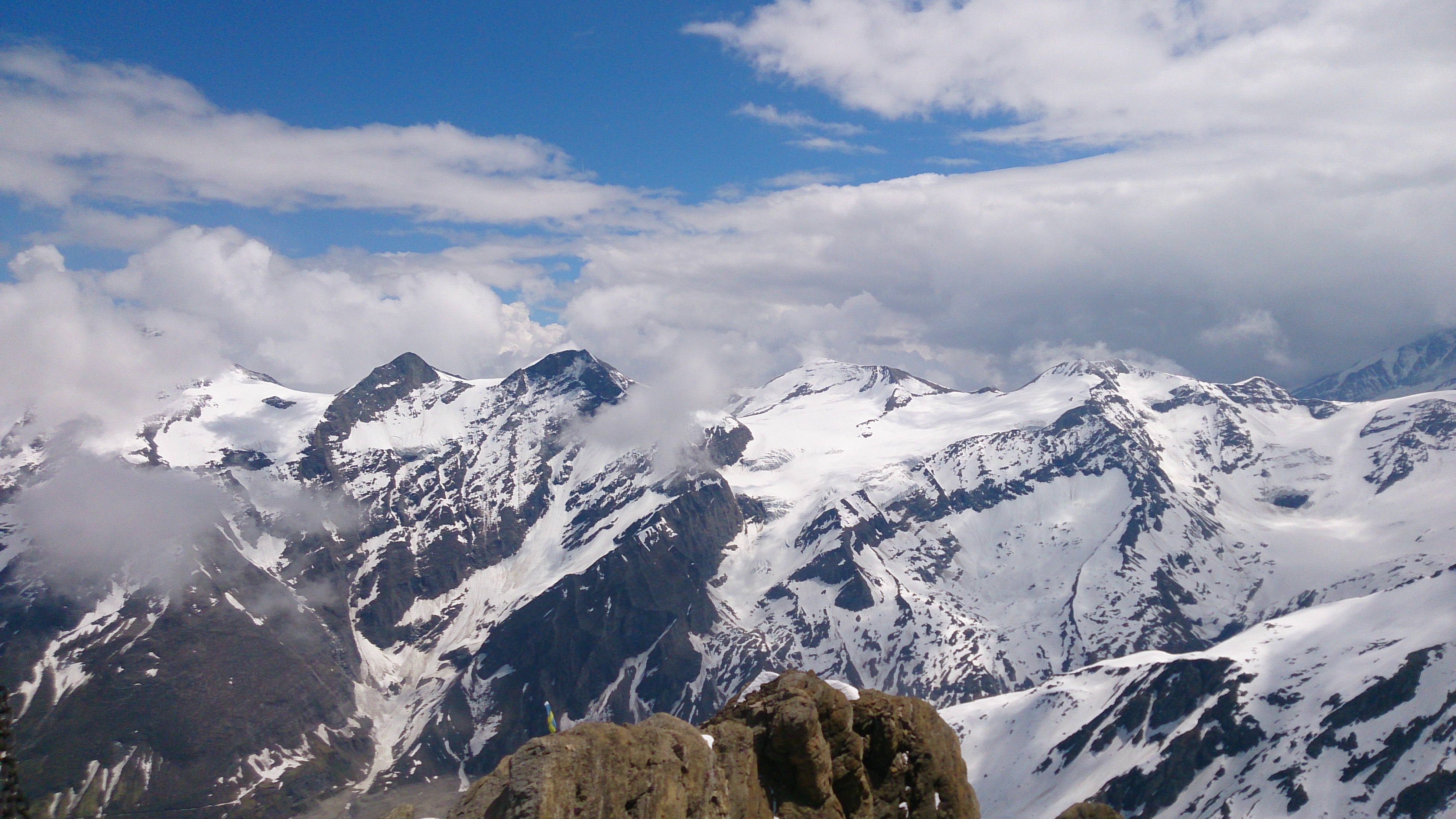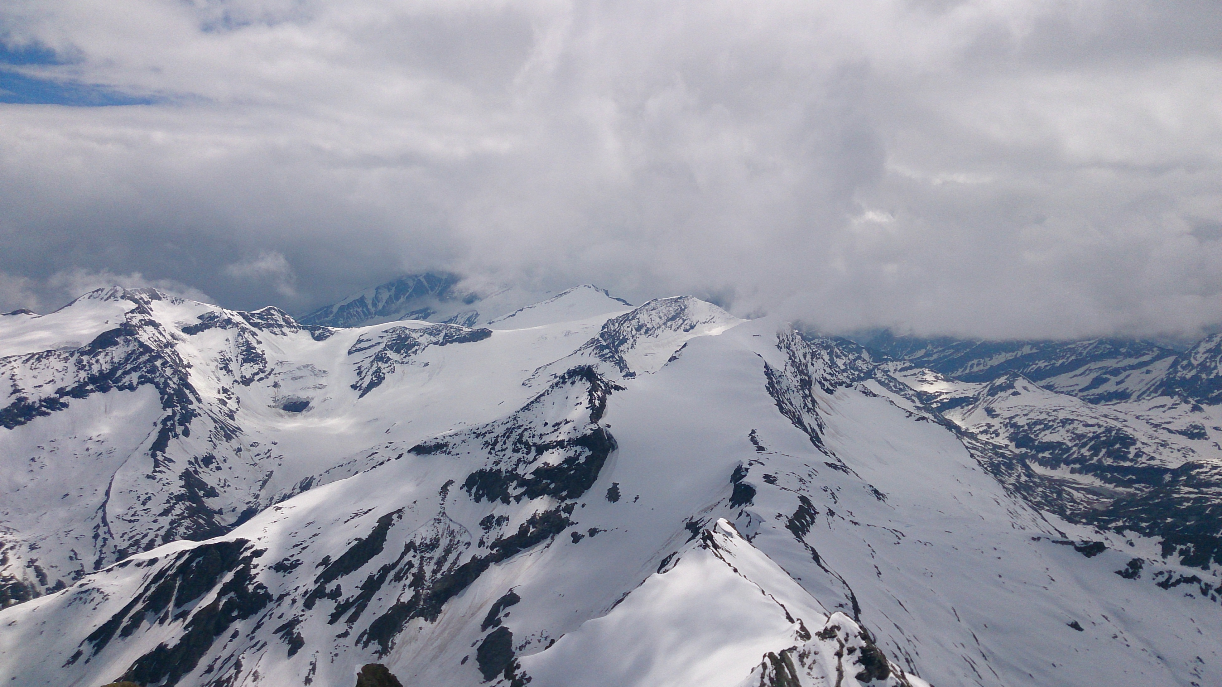 Blick vom Gipfel zum Hocheiser (auch eine schöne Tour, siehe meinen Forumseintrag), Großglockner links gerade in Wolken: