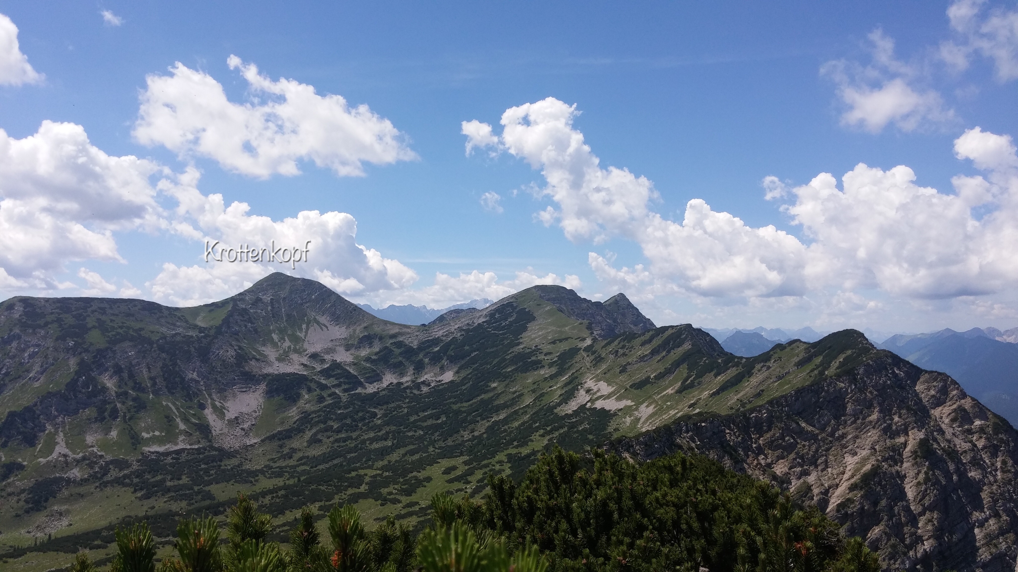 Dann auf steinigem Weg bis unterhalb des Gipfels, wo die Latschenzone beginnt. Das letzte Stück zum Gipfel ist steil. Ein schmaler Weg