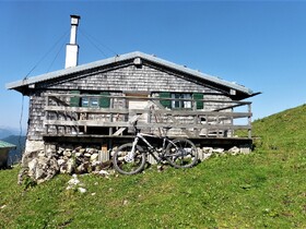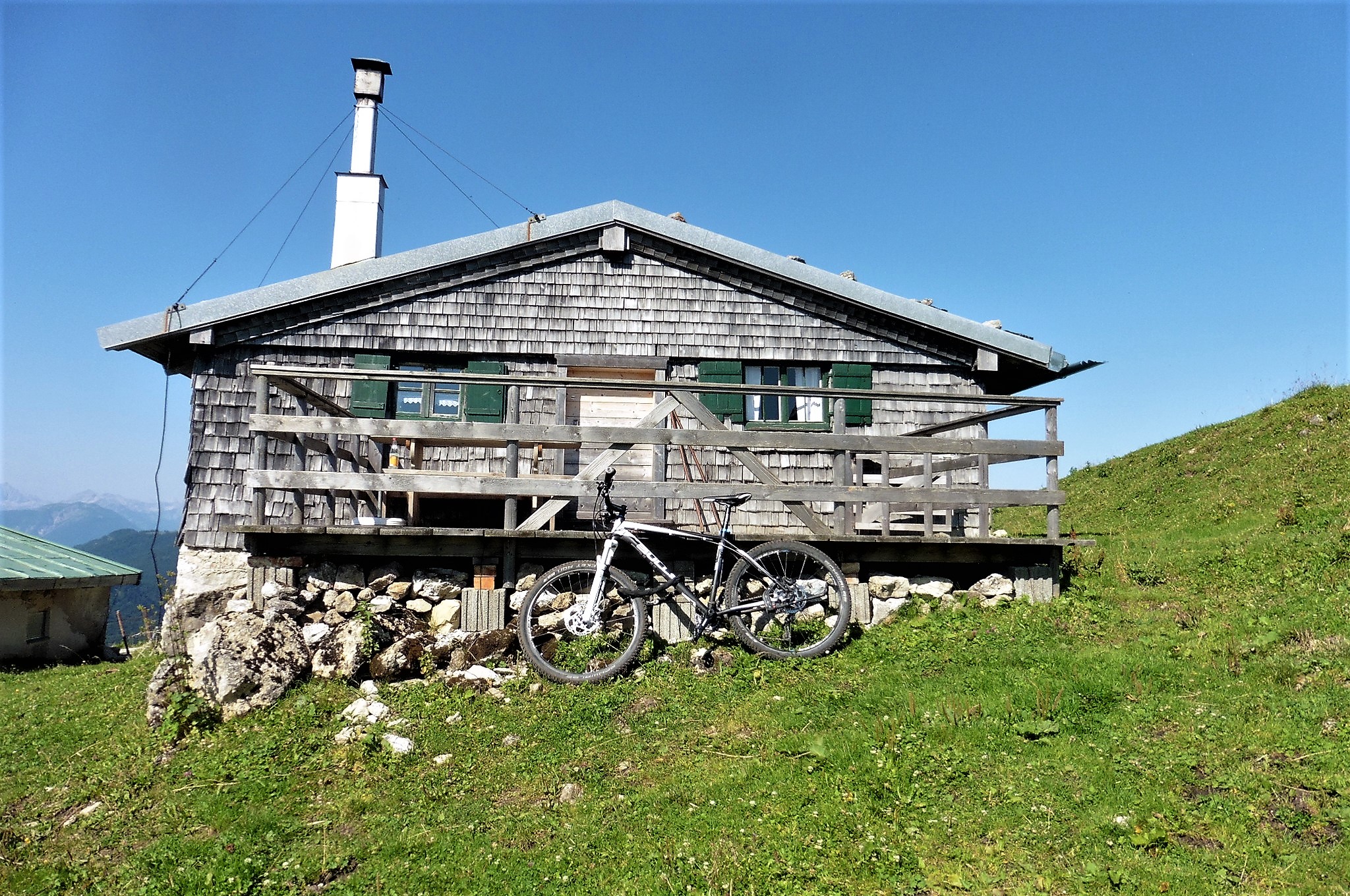 Sonstiges: mit dem Radl über die Röhrlmoosalm zur Roßsteinalm - Raddepot; auf dem Wanderweg bis auf den gratartigen Rücken; jetzt pfadlos über den Rücken zum Beginn des Grates und über diesen zum Gipfel des Roßsteins; jenseits hinunter zur Tegernseer Hütte; unmittelbar vor dem Küchenfenster beginnt die Rinne, welche in leichter Kletterei auf den Buchstein führt; zurück zur Hütte und über den Klettersteig hinunter zum Wanderweg, der um den Roßstein herum zur Roßsteinalm leitet; die anschließende Abfahrt - ein Hochgenuss !
