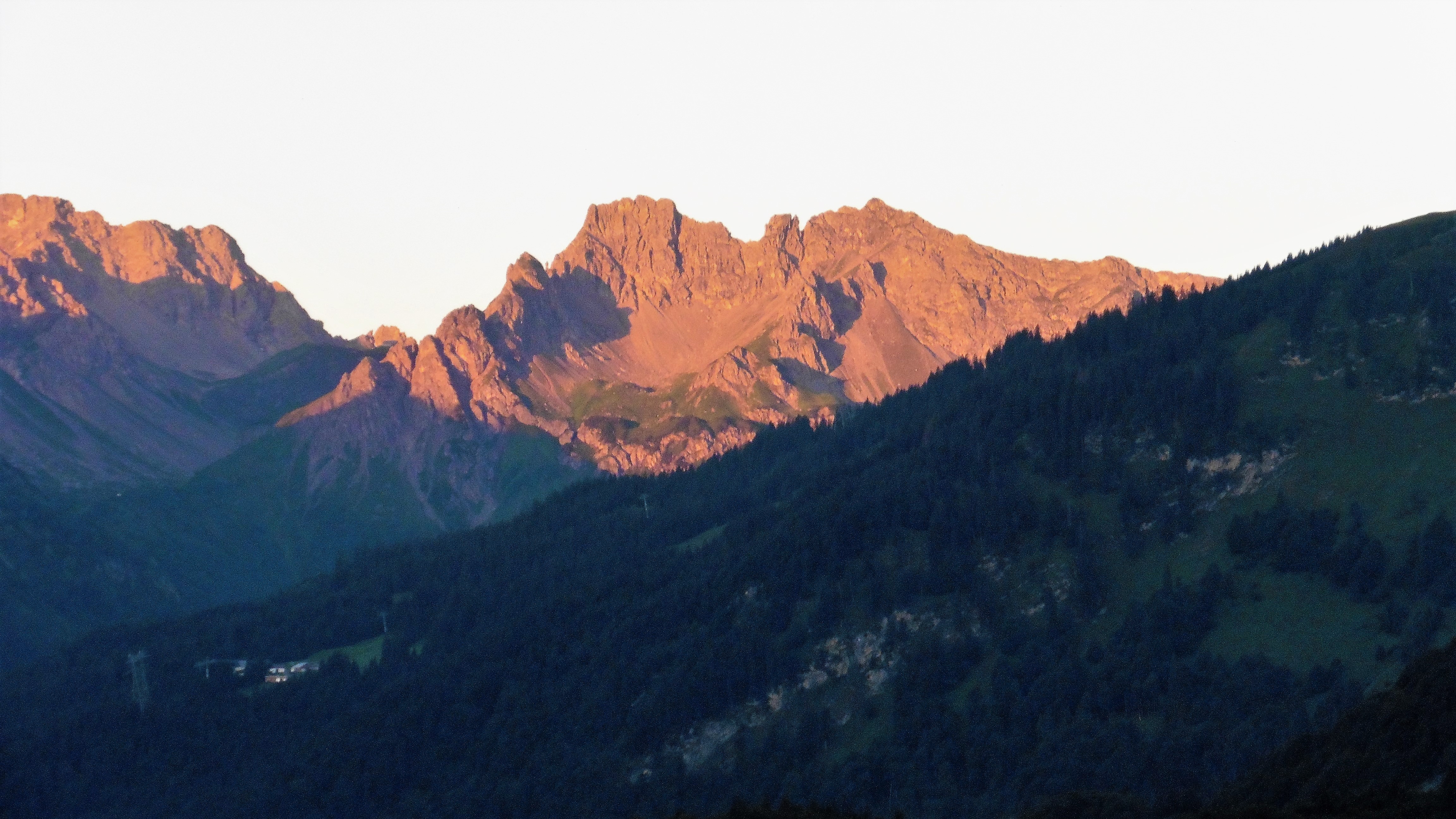 Bild 1: Sonnenaufgang über dem Fiderepass (Schafalpenköpfe und Hammerspitzen);
