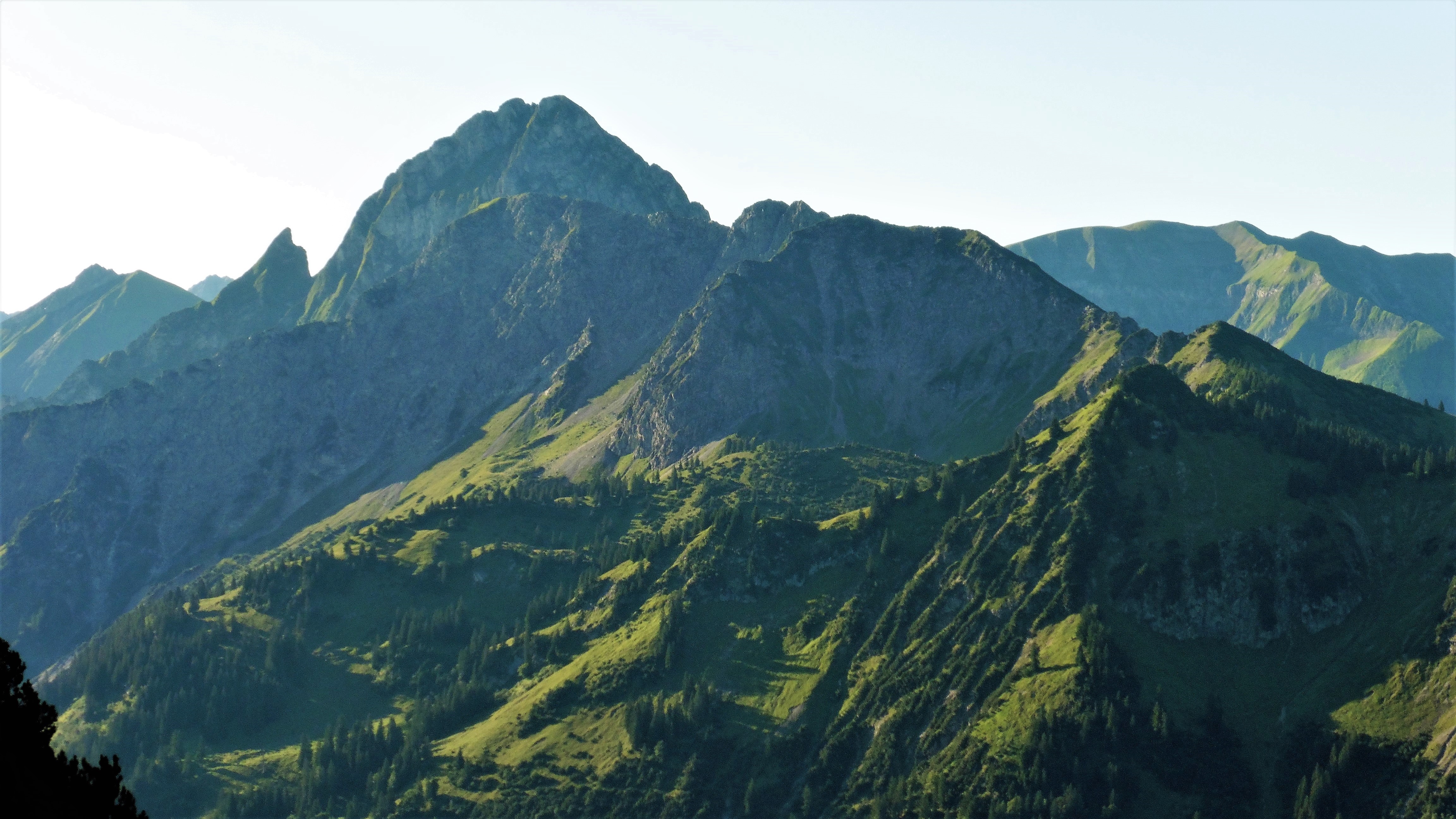 Tourenverhältnisse: waren gestern, nach dem ausgiebigen Regen etwas ungünstig; das Begehen des Steiges erforderte erhöhte Aufmerksamkeit; aufgrund der üppig wuchernden Flora waren meine Beine knieabwärts bereits nach 10 Minuten patschnass; der gesamte Aufstieg ist weder markiert noch mit Hinweisschildern ausgewiesen; der Zustieg ist aber mithilfe der AV-Karte Allgäu-West leicht zu finden; bis zum Schattenbergkreuz (dieses steht etwas tiefer auf einem Vorgipfel) deutlicher Weg, dann nur mehr Steige resp. Steigspuren; ca. 1300 Hm;