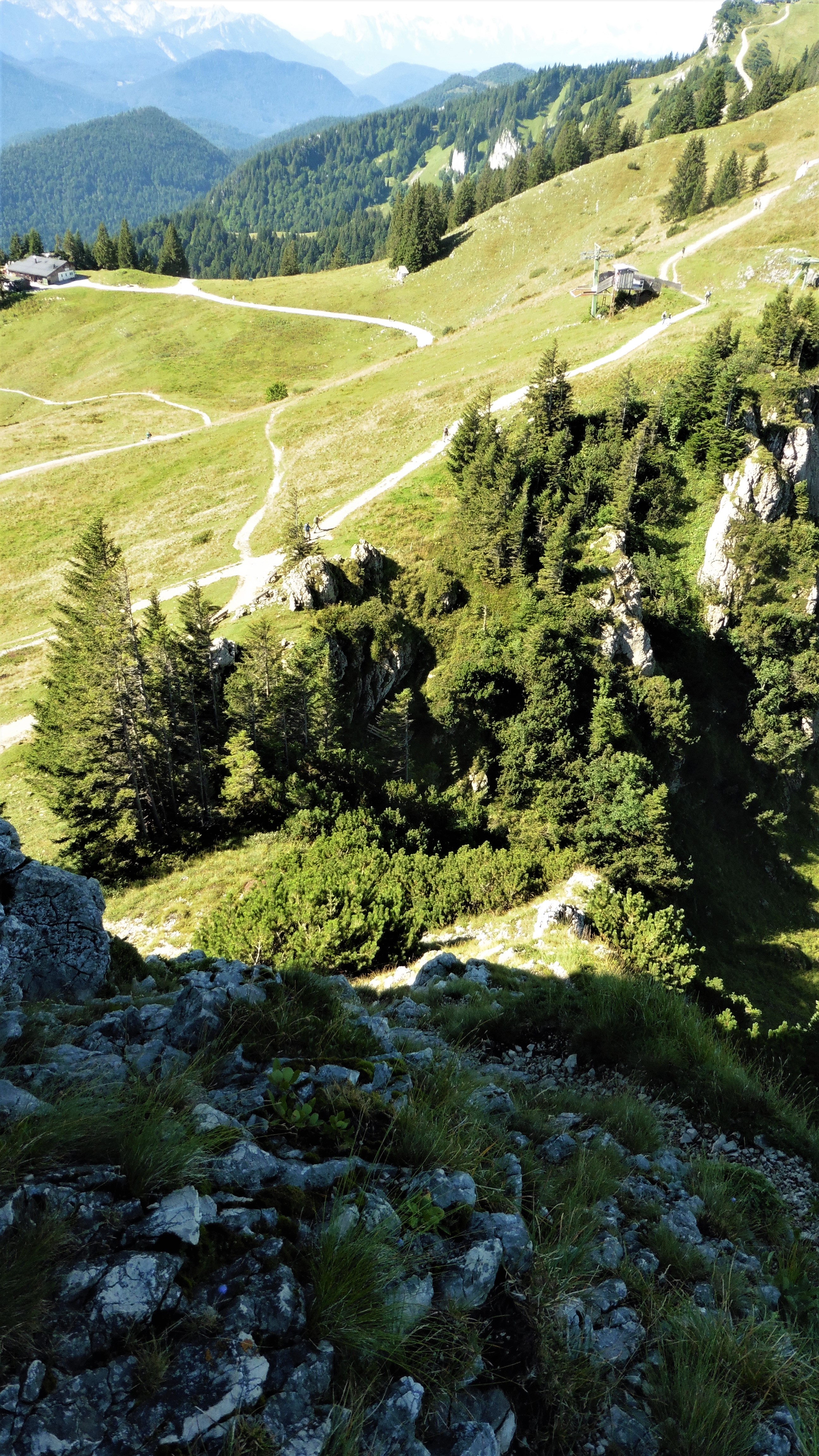 Sonstiges: vom Parkplatz bis kurz vor die Reiseralm; rechts ab auf Forstweg, der in einem großen Bogen um den Kogelberg zum Branntweingraben führt; durch diesen in den Kessel der Logham - und Tennen Alm (beide nicht bewirtschaftet); auf Steigspuren hinauf zur Tennen Alm; rechts ab in eine Senke und über Felsen auf das Kirchl; zurück zur Tennen Alm und auf Steig unter den Nordabstürzen des Stangenecks zum Wanderweg queren; auf diesem auf den Kamm - Brauneck / Stangeneck; am Wanderweg nach links leicht bergab und dann auf Steigspuren zum Westgrat des Schrödelstein (am Grat mehrere gebohrte Haken); weiter zum Brauneck und mit der Seilbahn knieschonend ins Tal;