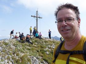 Tourenverhältnisse: Alles bestens. Mit MTB zu den Roßsteinalmen, zu Fuß via Westgrat (Kletterstellen I bis II) zum Gipfel.