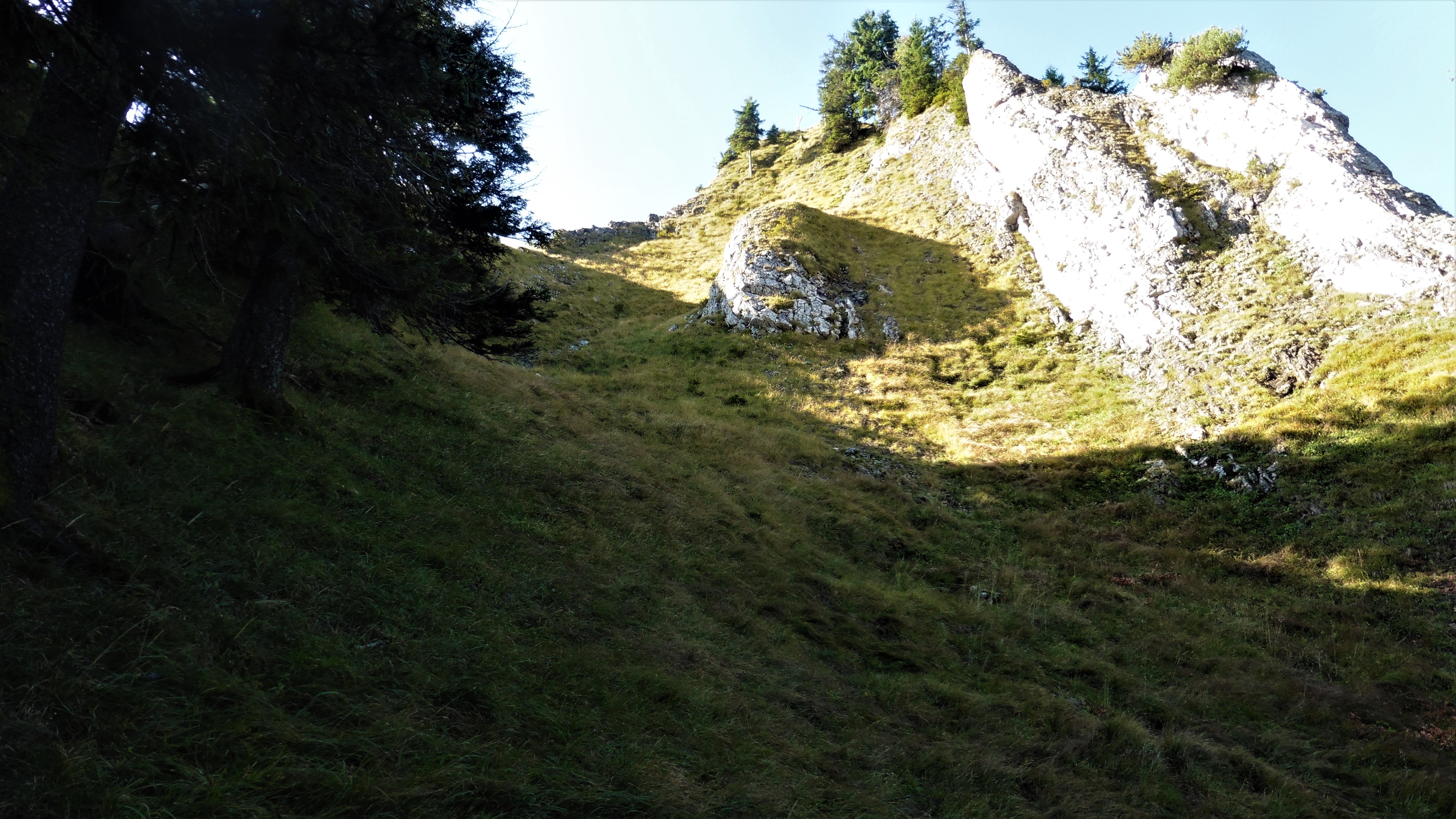 Bild 5: die steile Grasrinne am Zellerhorn;