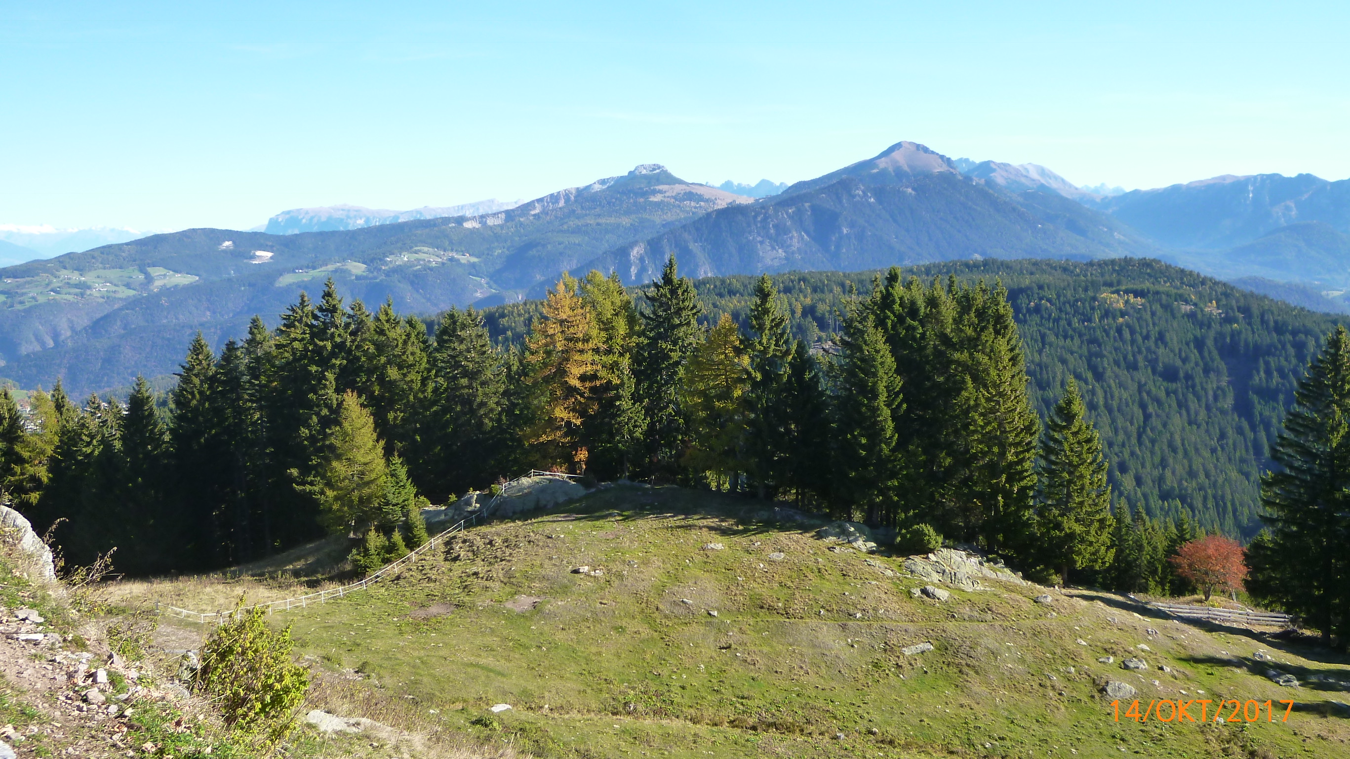hinauf zur Horn Alm mit bester Aussicht, Radldepot.