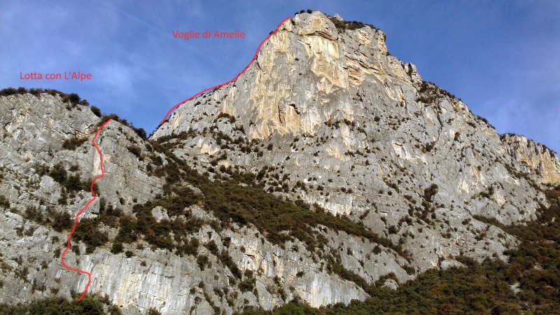 "Le Strane Voglie Di Amelie" relativ leichte und gut abgesicherte 8 Seillängenroute über die Südwestkante des Piccolo Dain (5+ und 6), die man ideal an die Lotta... anhängen kann. Allerdings nicht immer ganz so gute Felsqualität, teilweise leicht brüchig und grasig. Steiler und unangehnehmer Abstieg. Gute Schuhe und Trittsicherheit notwendig. Wenn mehrere Seilschaften in der Tour sind besteht Steinschlaggefahr, da im oberen Teil auf den Bändern viel loses Zeug liegt.