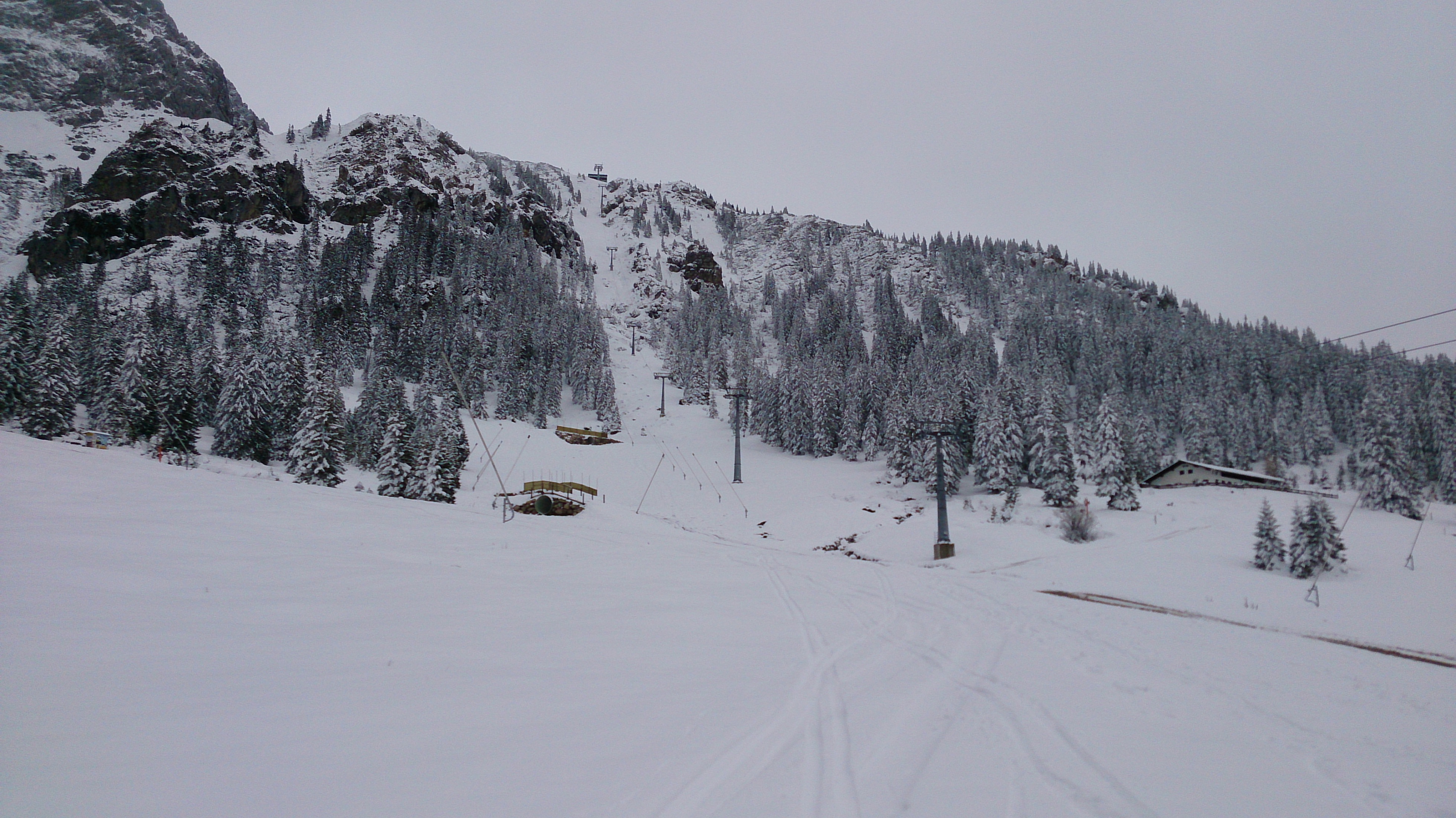 Unterhalb der Ganghofer-Sesselbahn-Talstation wurde der Schnee schon arg knapp, noch weiter unten dann aper:
