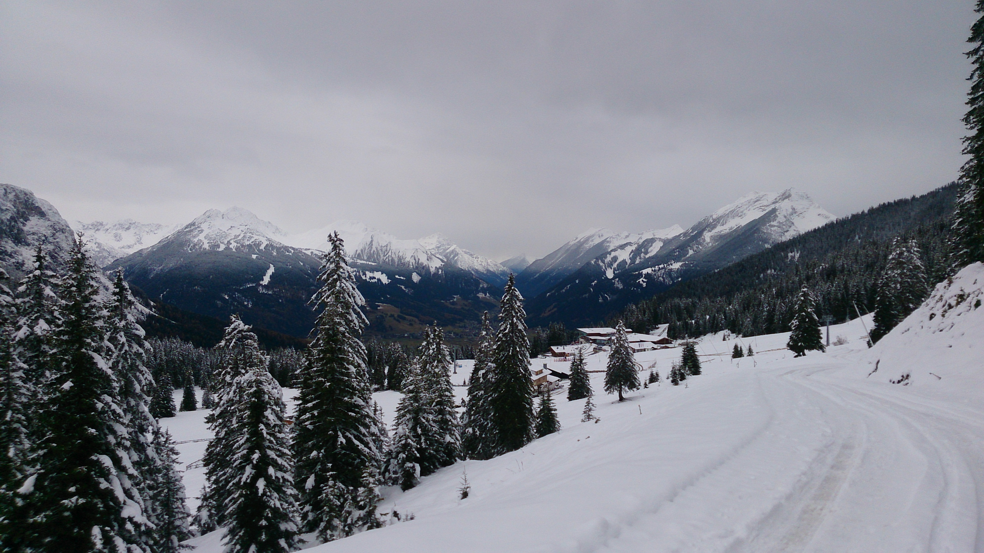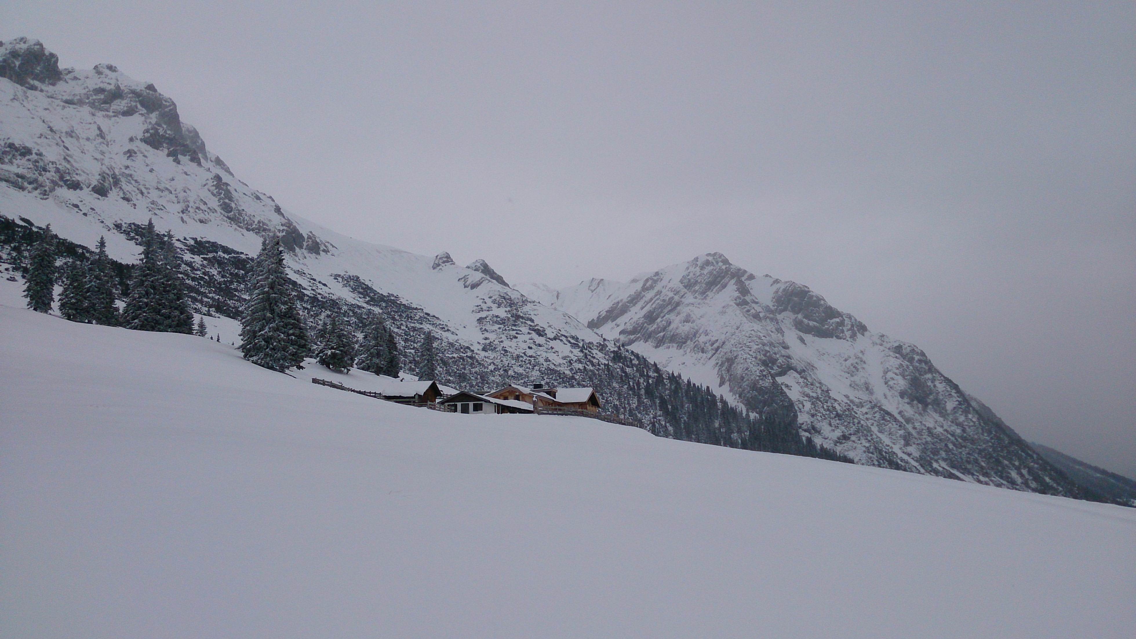 Tourenverhältnisse: ganz unten ist es aper, bei der Talstation der Ganghofer-SB 5-10 cm Schnee; ab der Ehrwalder Alm recht winterlich und Schneelage gut ausreichend