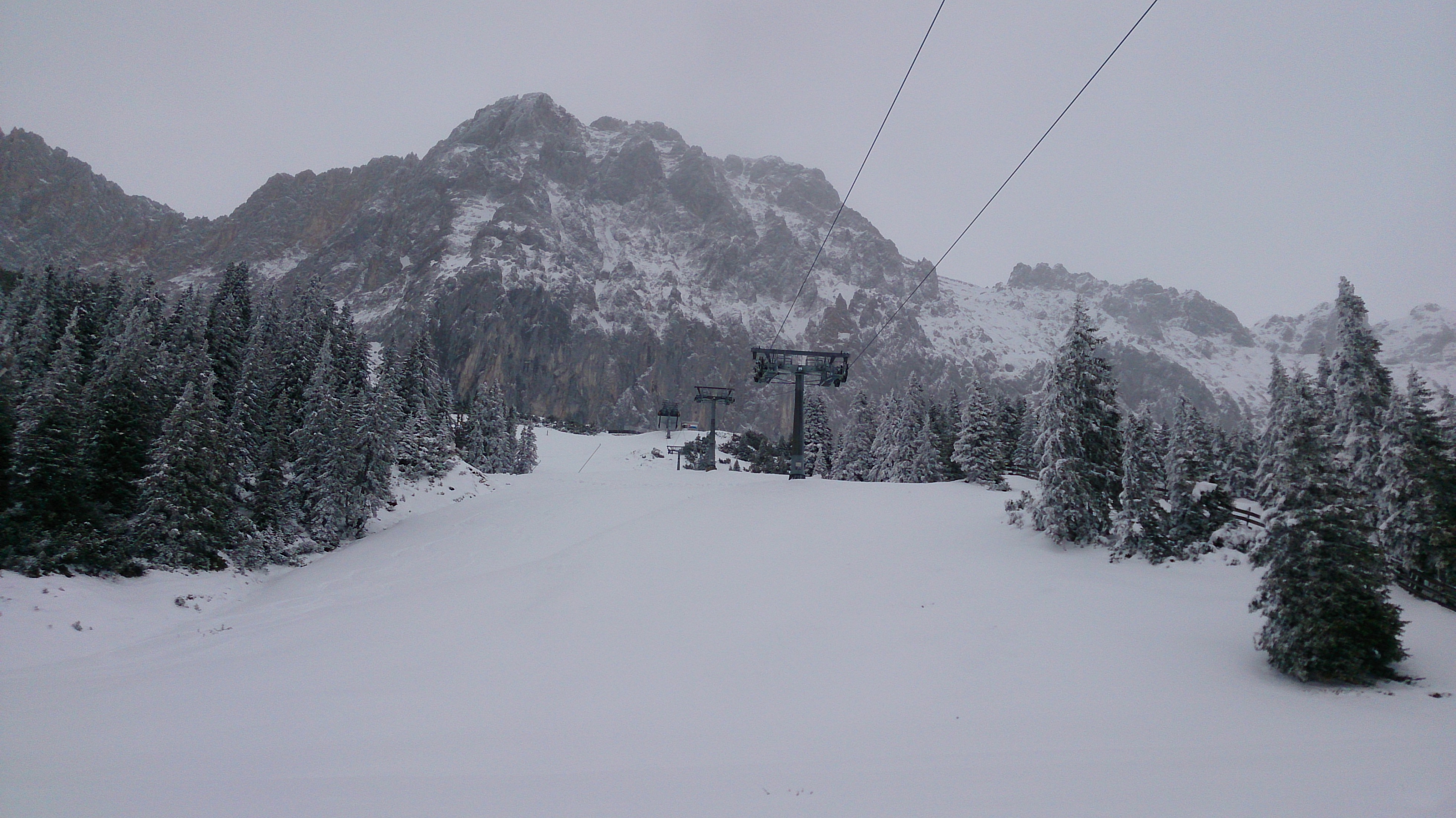 Sonstiges: Heute die erste Skitour in den heimischen Gefilden. An der Talstation der Almbahn sah es ja noch sehr mau aus (aper), nach kurzer Zeit ca. 2cm durchnässter Schnee direkt auf dem Gras - auch nicht berauschend. Ab der Ganghofer-SB-Talstation ging es heute aber dann doch recht gut, ab der Ehrwalder Alm ist dann richtig Winter. In der Abfahrt gab es oben ein bißchen Pulverschnee, da wo schon Schneekanonen liefen aber auch mit Bruchharschanteil. Weiter unten ist Schussfahrt angesagt im Betonschnee. Letztlich ging es mit den Steinski dann doch noch bis ein paar Minuten vor die Talstation. Könnte aber schon morgen anders sein, am Nachmittag hat unterhalb ca. 1.500 m Regen eingesetzt.