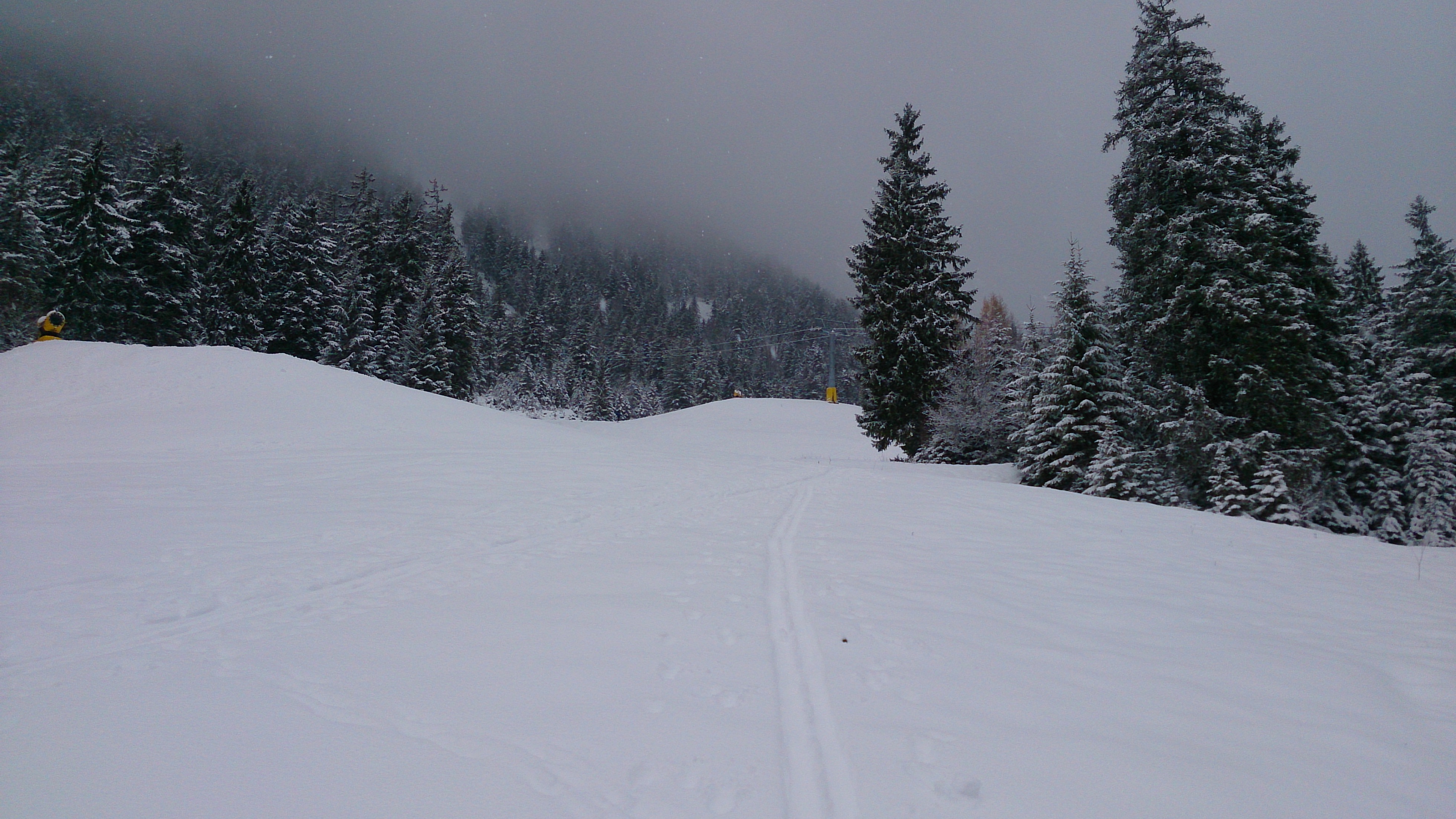 Weiter oben war es in der Abfahrt an einigen Stellen mit den belagarmen Steinski schon fast zu flach zum Abfahren: