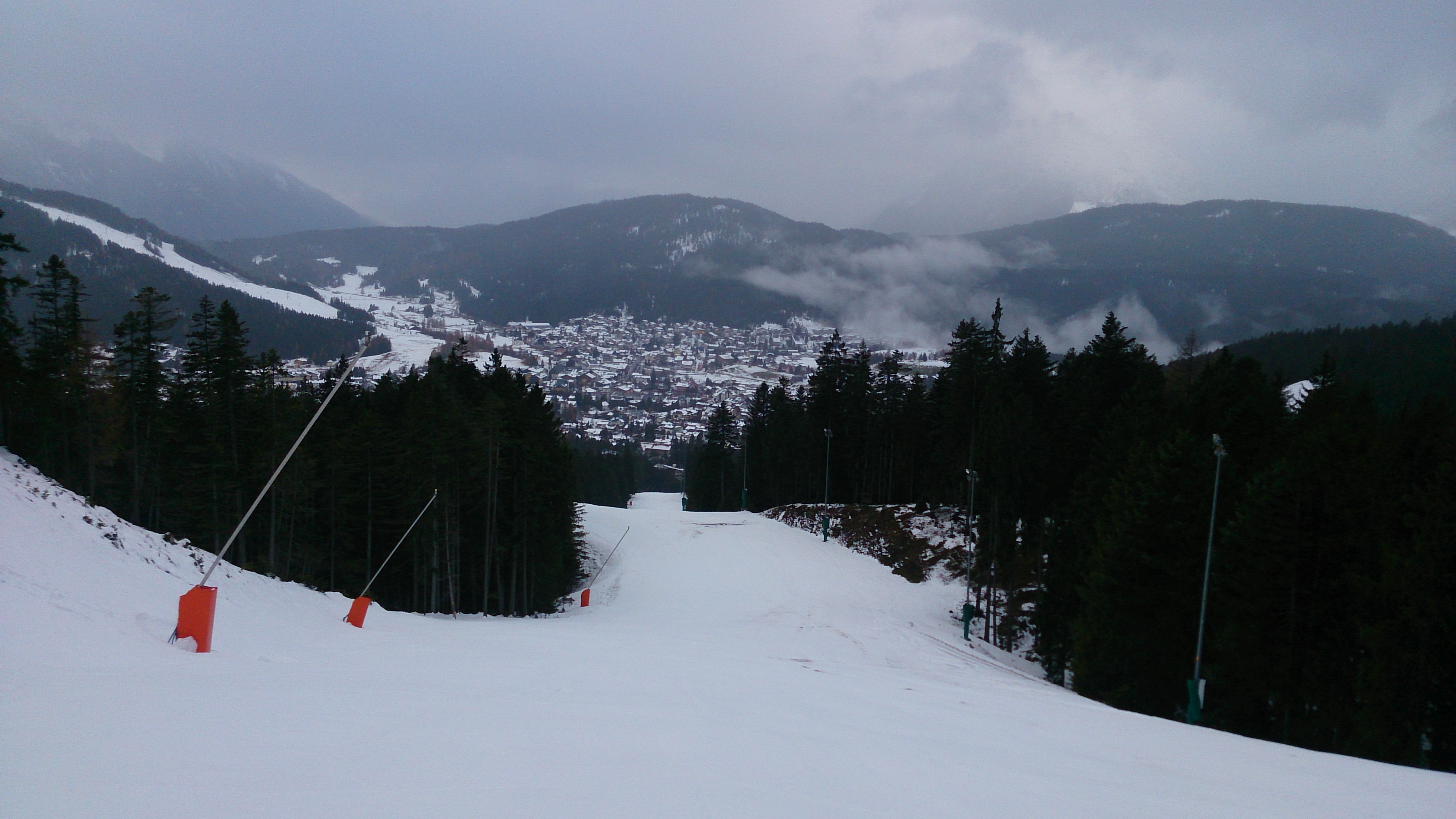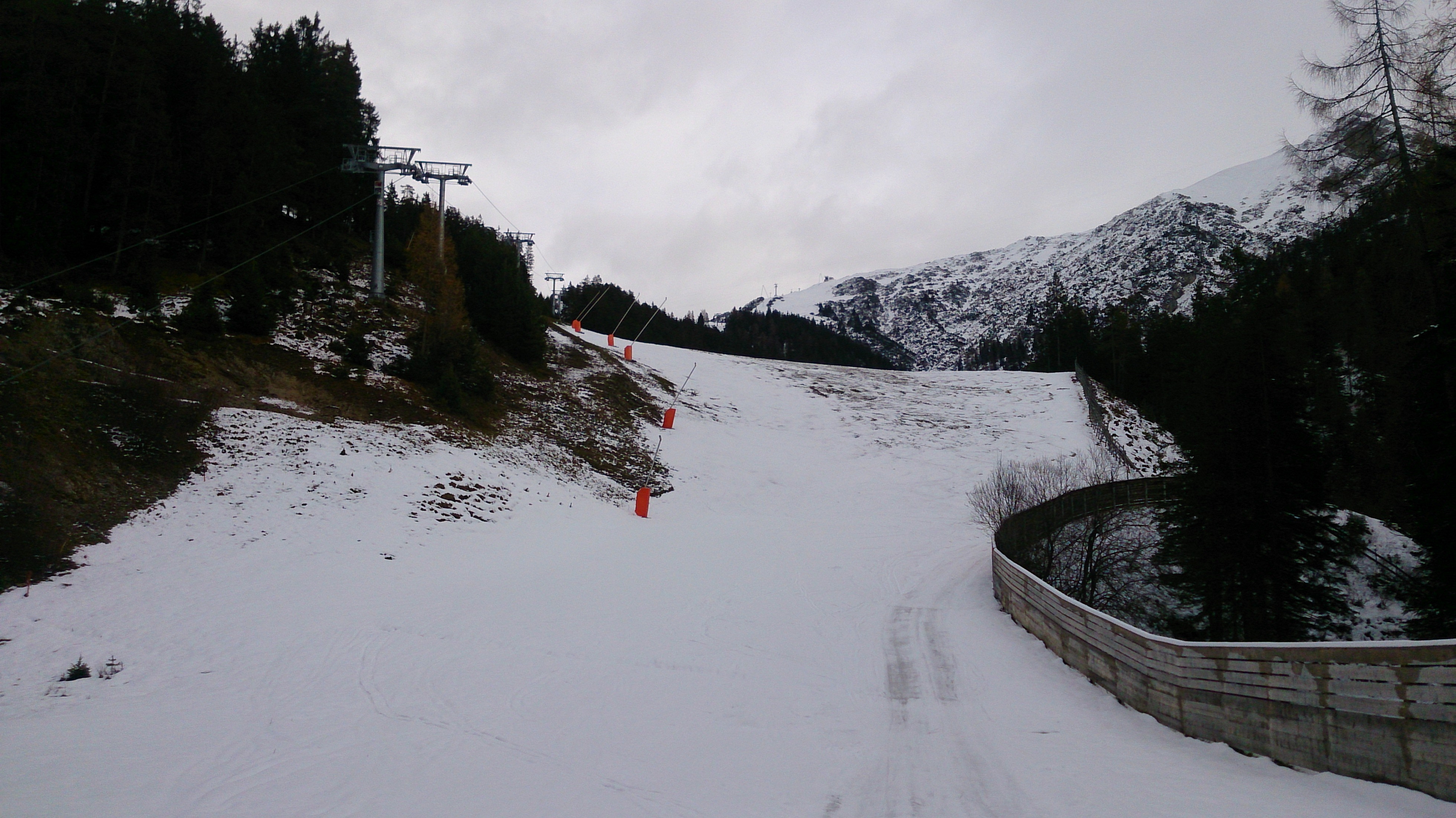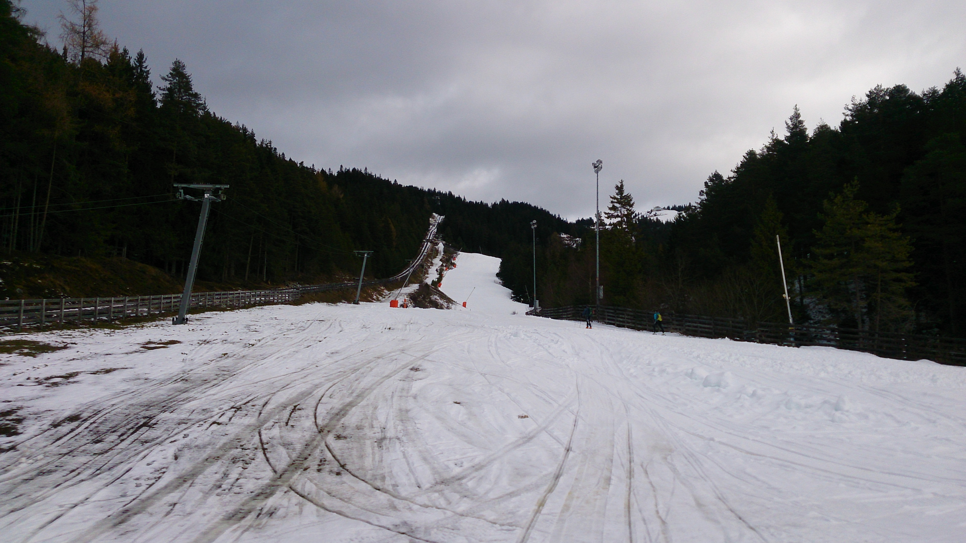 Prognose: angesichts der angekündigten Wärme und des Regens unsicher; wenn es nicht zu warm wird, dürfte unten eine dünne Kunstschneedecke schon überleben