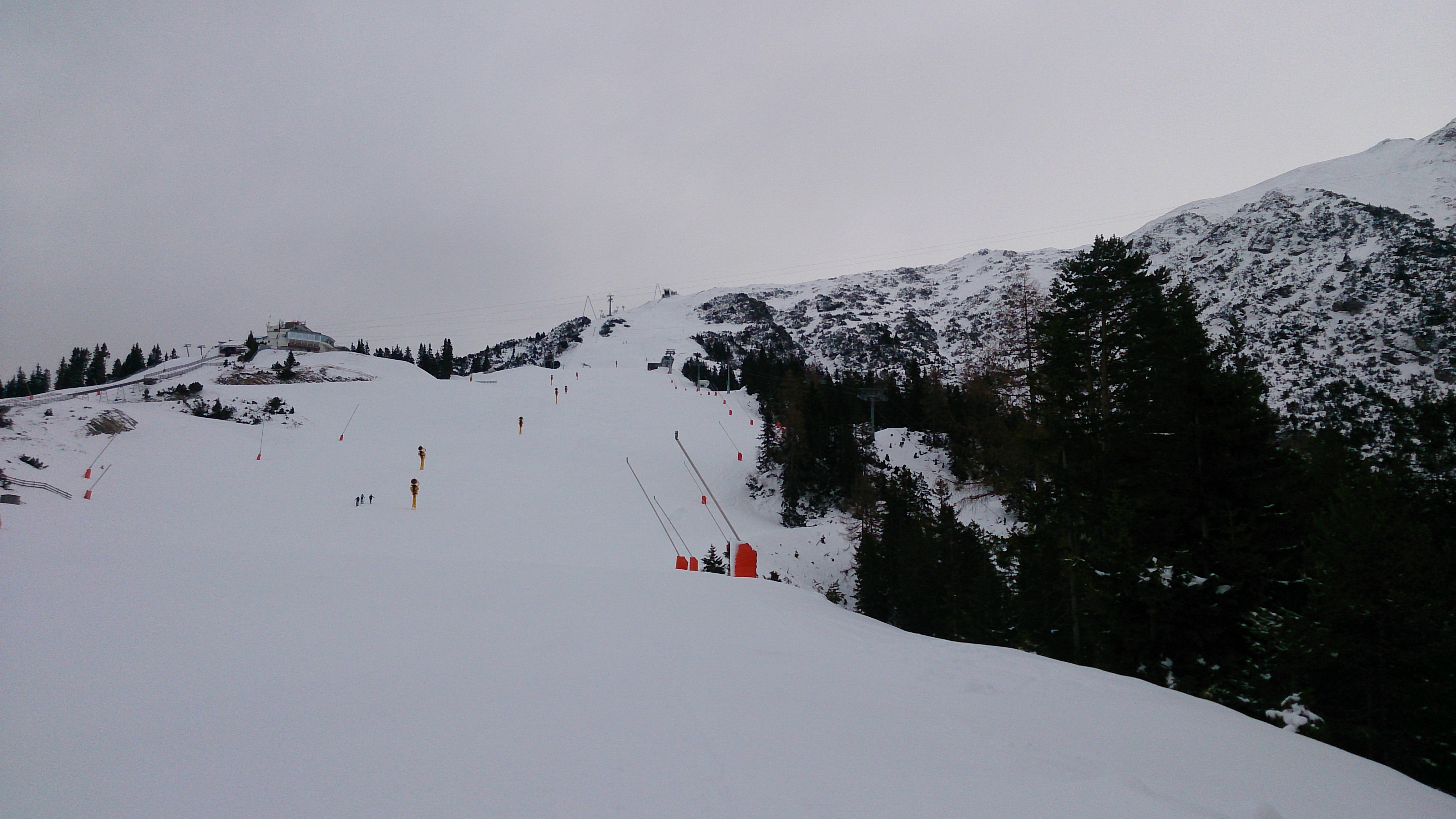 Sonstiges: Heute eine Skitour im noch geschlossenen Rosshütte-Skigebiet. Unten hat der Regen und die Wärme schon ganze Arbeit geleistet, der Schnee ist total durchfeuchtet und stark zurückgegangen. Dank eines schmalen und nicht sehr mächtigen Kunstschneestreifens ging es aber noch gut von unten weg. Heute wurde auch viel herumgeschoben von den Pistenbullys (demnächst Eröffnung geplant?). Der direkte Aufstieg (entlang des Rosshütte-Express) hat schon kurze apere Stellen. Die Hocheggabfahrt ging aber gut, die meisten haben diese auch als Aufstieg gewählt (teilweise relativ flach).