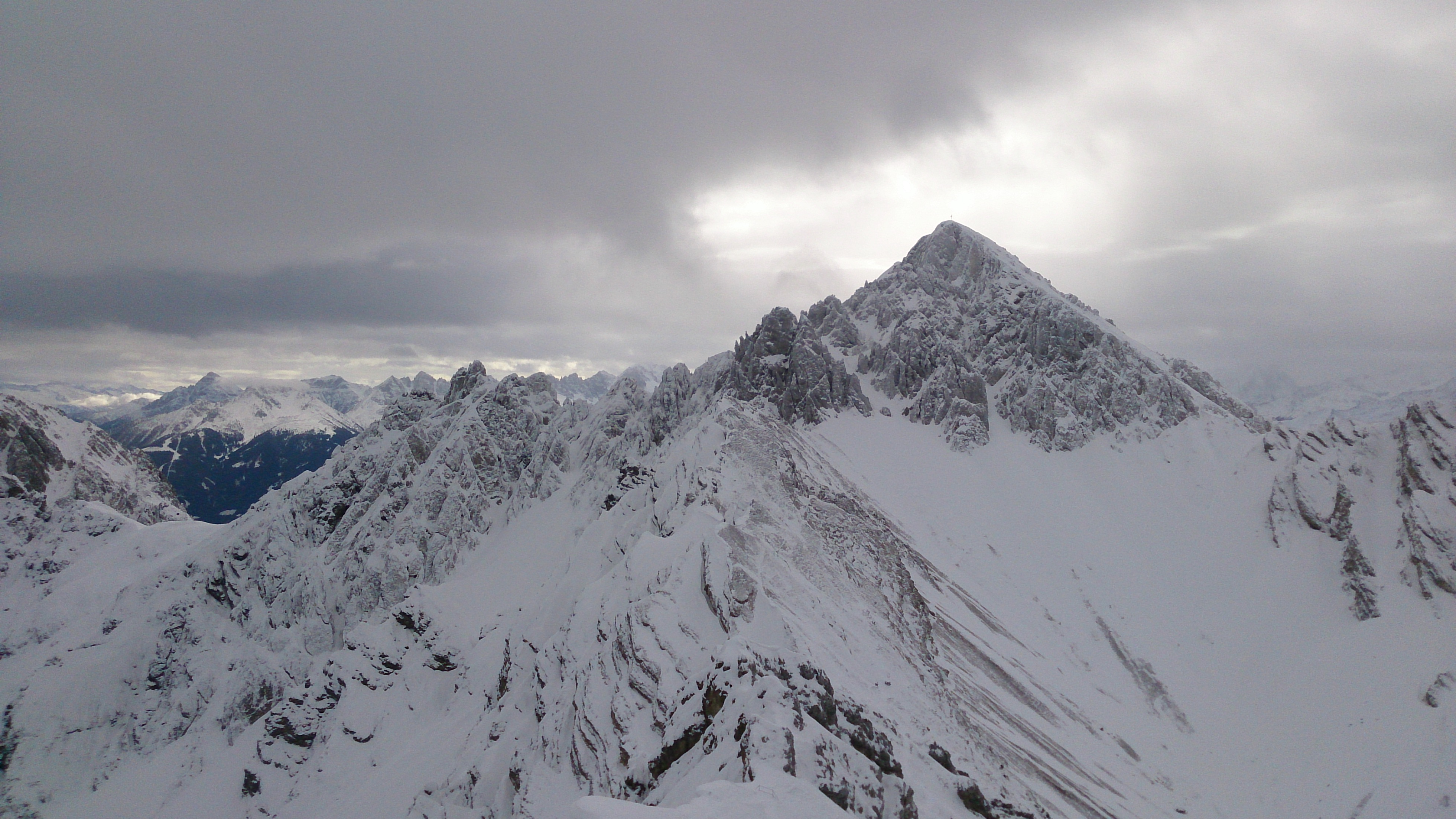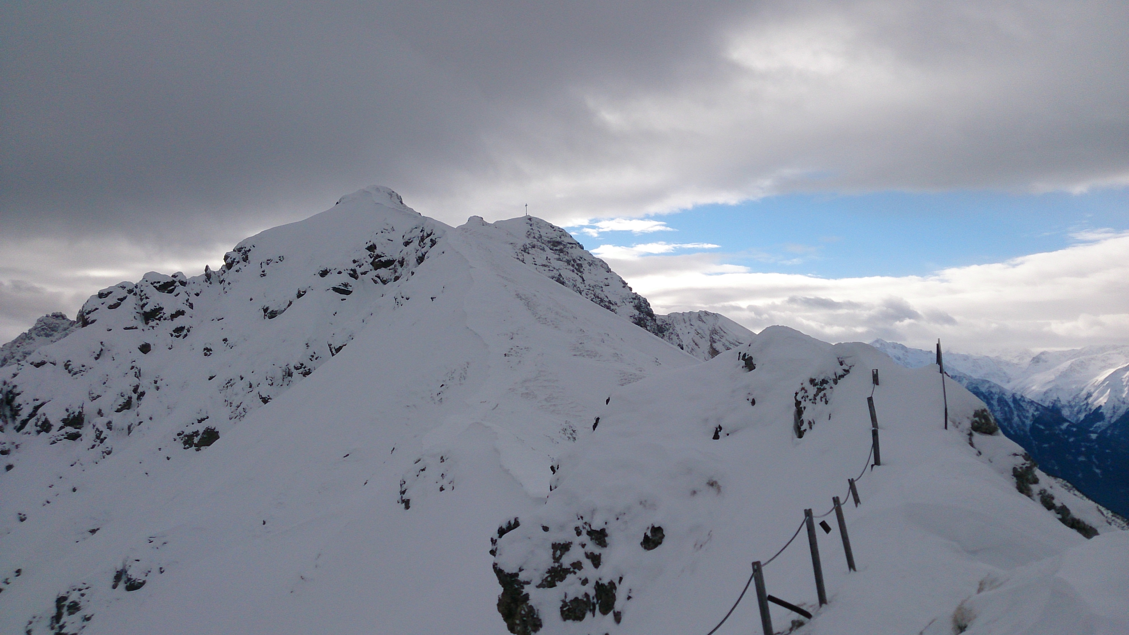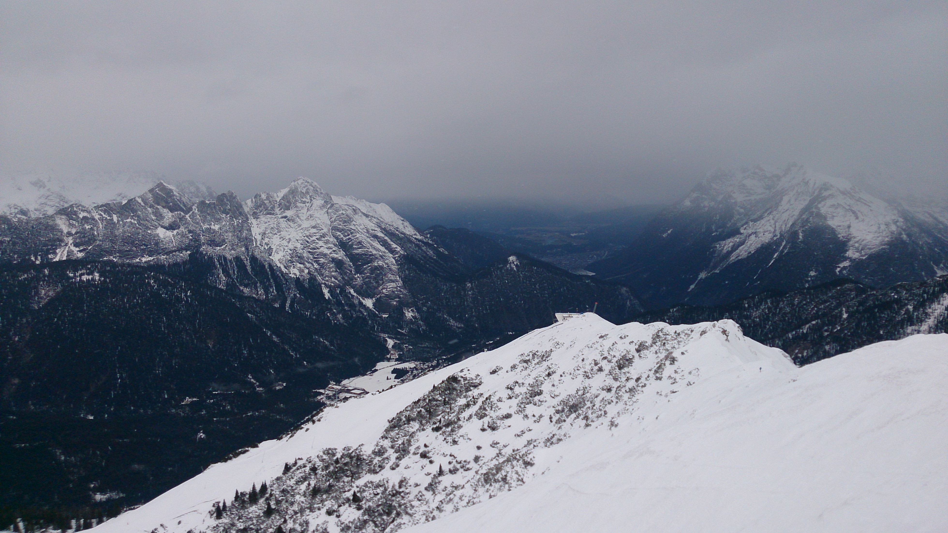 Ab dem Seefelder Joch war die Witterung dann doch recht garstig, so blieb ich beim Gipfelanstieg (geht mit Skiern rauf / runter) alleine. Ansonsten sehr viel Betrieb von Tourengehern. Leider trübte es untertags ein und fing dann auch an zu regnen, schon bald bis weit hinauf.