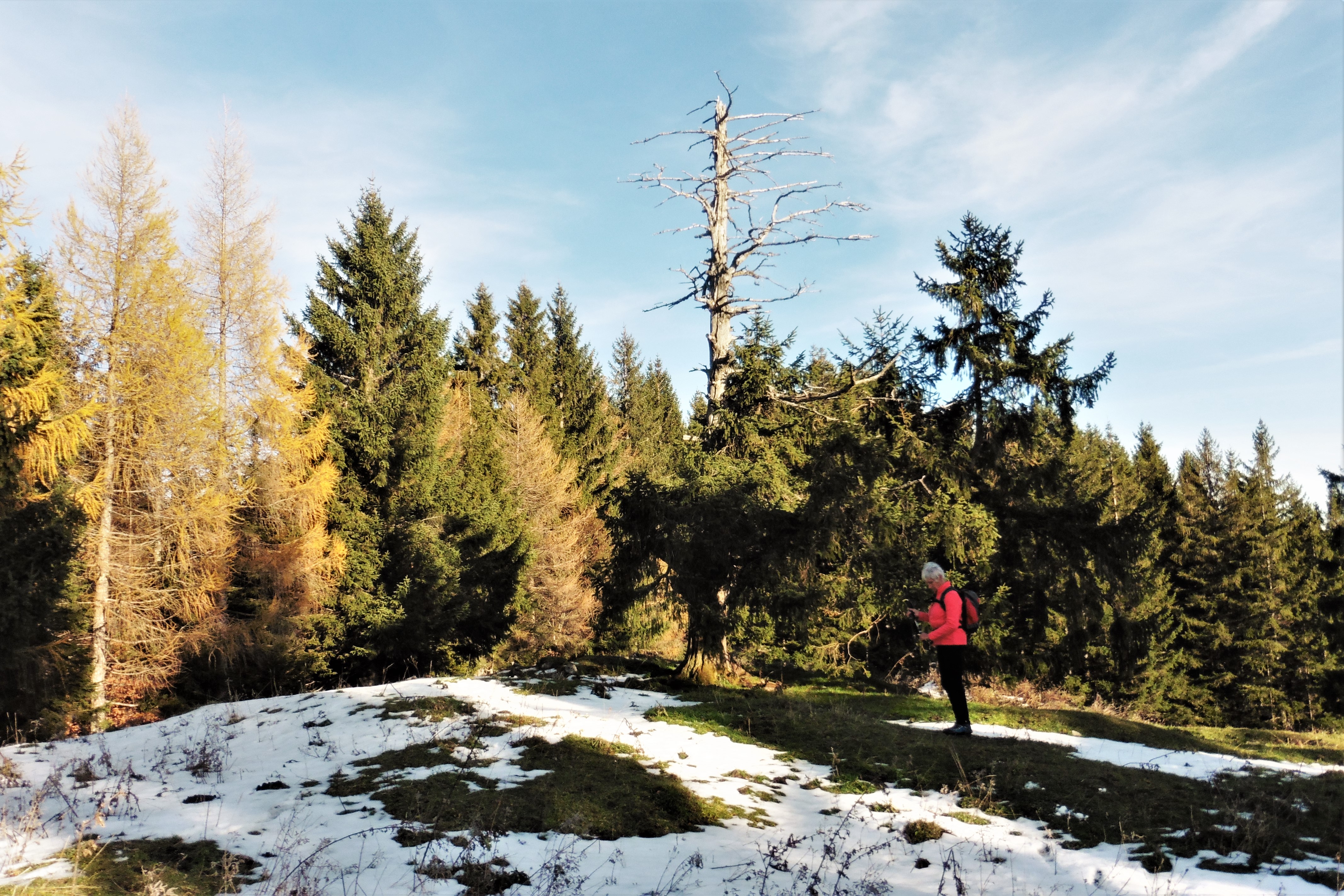 Sonstiges: vom Parkplatz über die Mais- und Sameralm auf den Haindorfer Berg; zurück zur Maisalm und über Forststraßen zur Schmiedalm; über die Wiese diagonal (Steinmännchen) auf den Erlbergkopf; Abstieg nach Norden in eine Senke und jenseits auf den Schwarzenberg hinauf; zurück in die Senke und dann nach Westen über die Vockalm auf eine Forststraße absteigen, die zum Parkplatz führt;