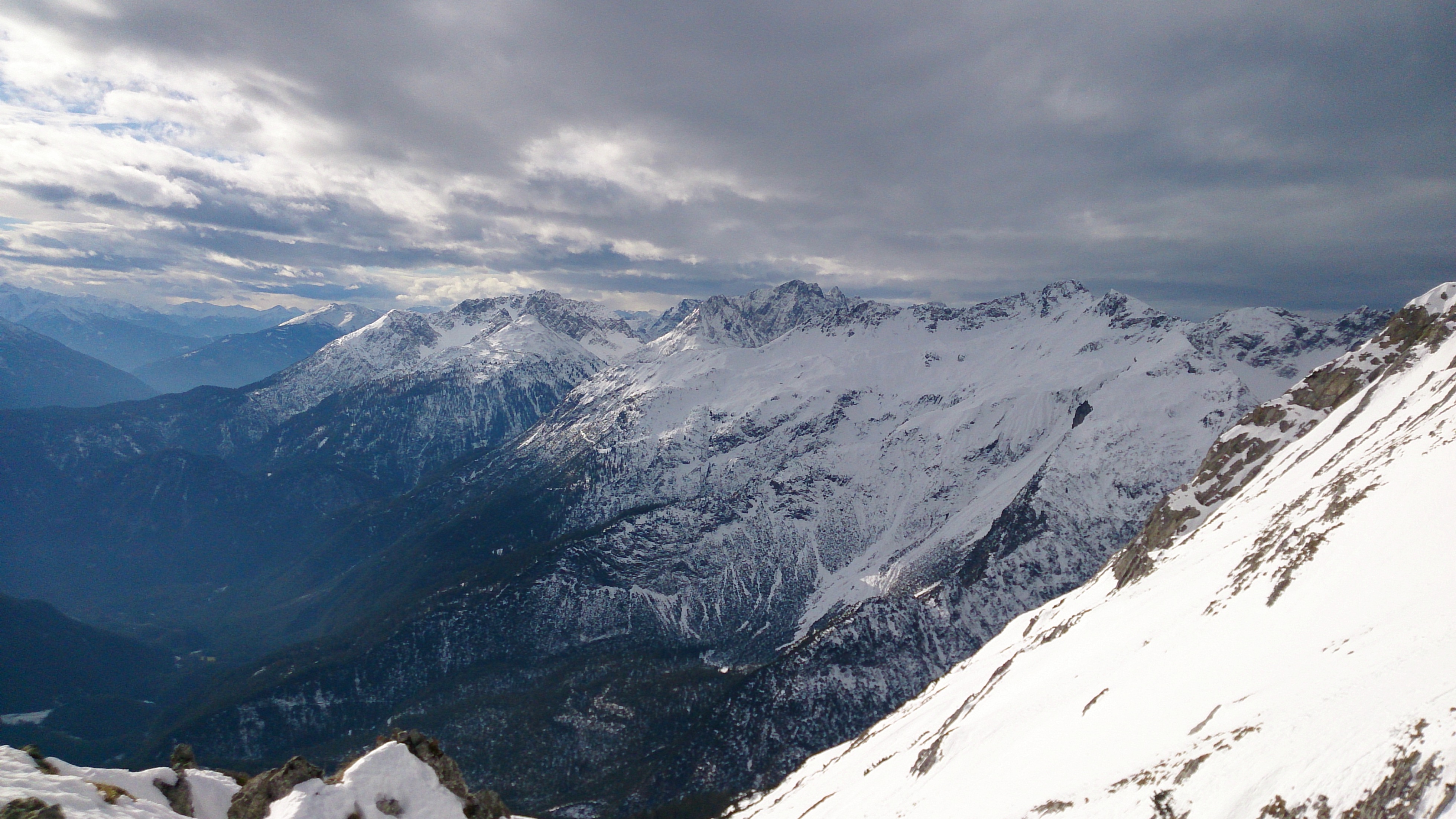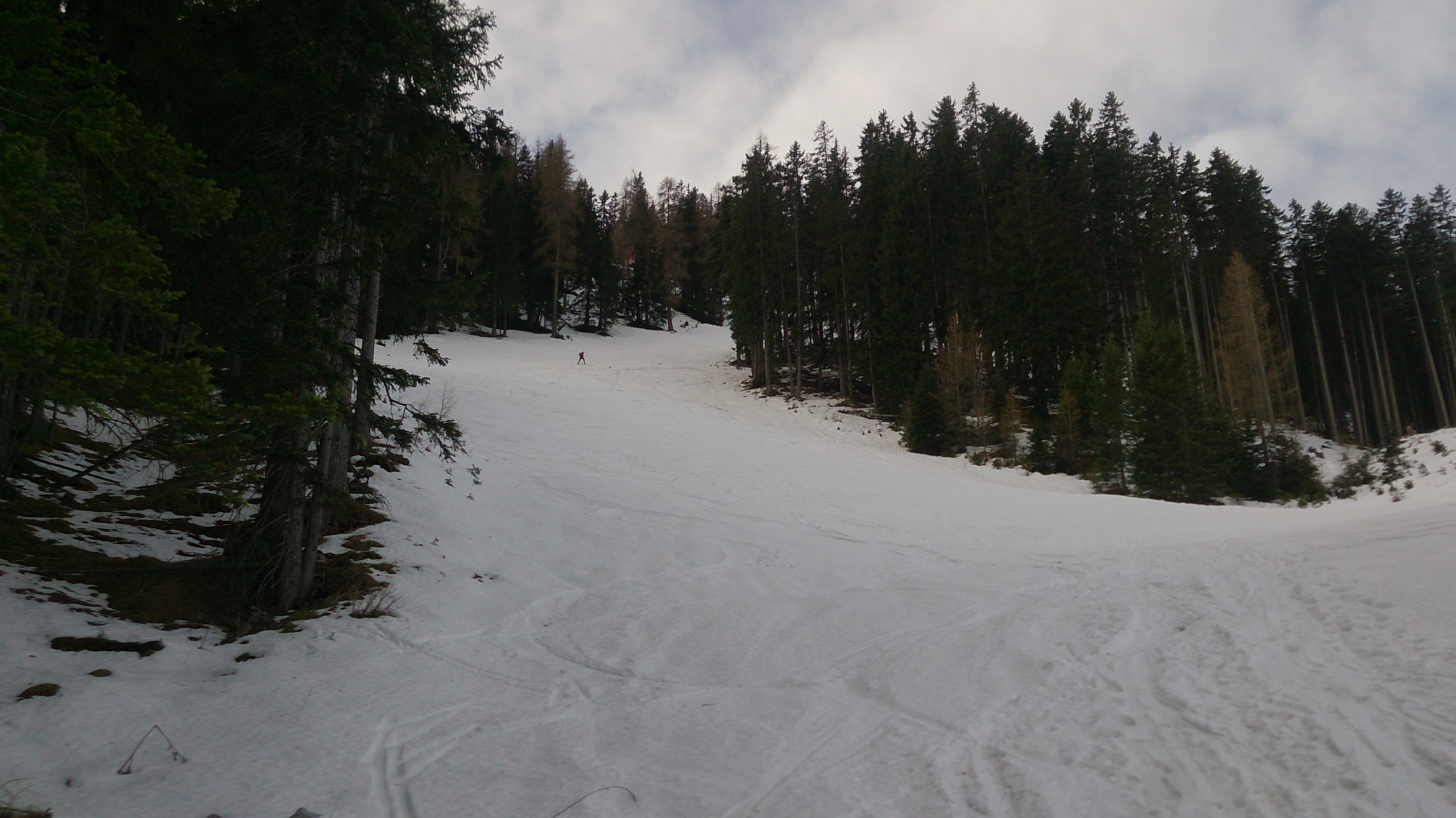 Tourenverhältnisse: unterhalb der Brettlalm (Mittelstation) sehr wenig Schnee, Steinski sinnvoll oder teilweise tragen; oberhalb ausreichend Schnee, ab ca. 1.700 m sogar richtig gut