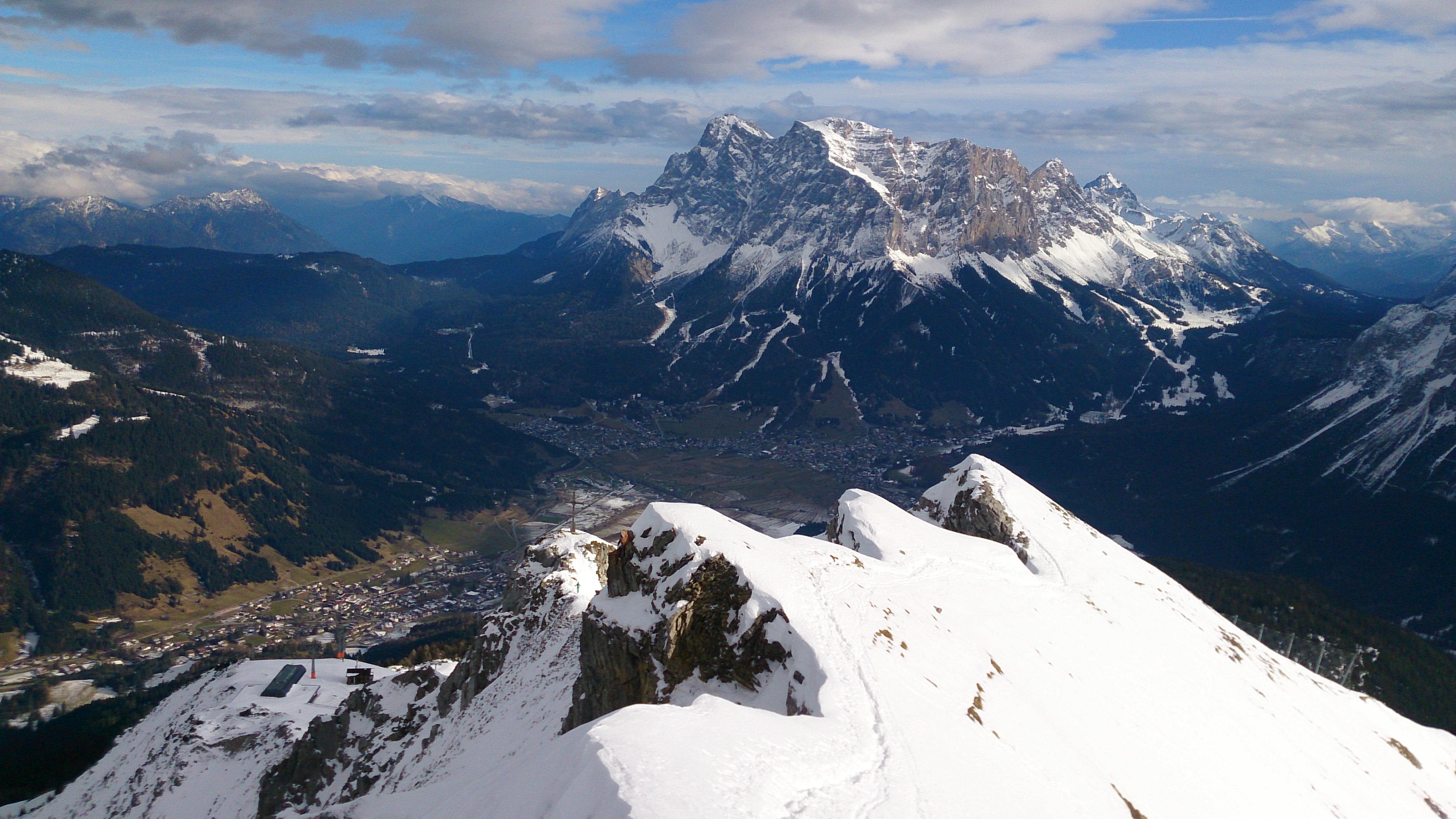 Blick vom Grubigstein über den Rauhen Kopf in den Ehrwalder Talkessel: