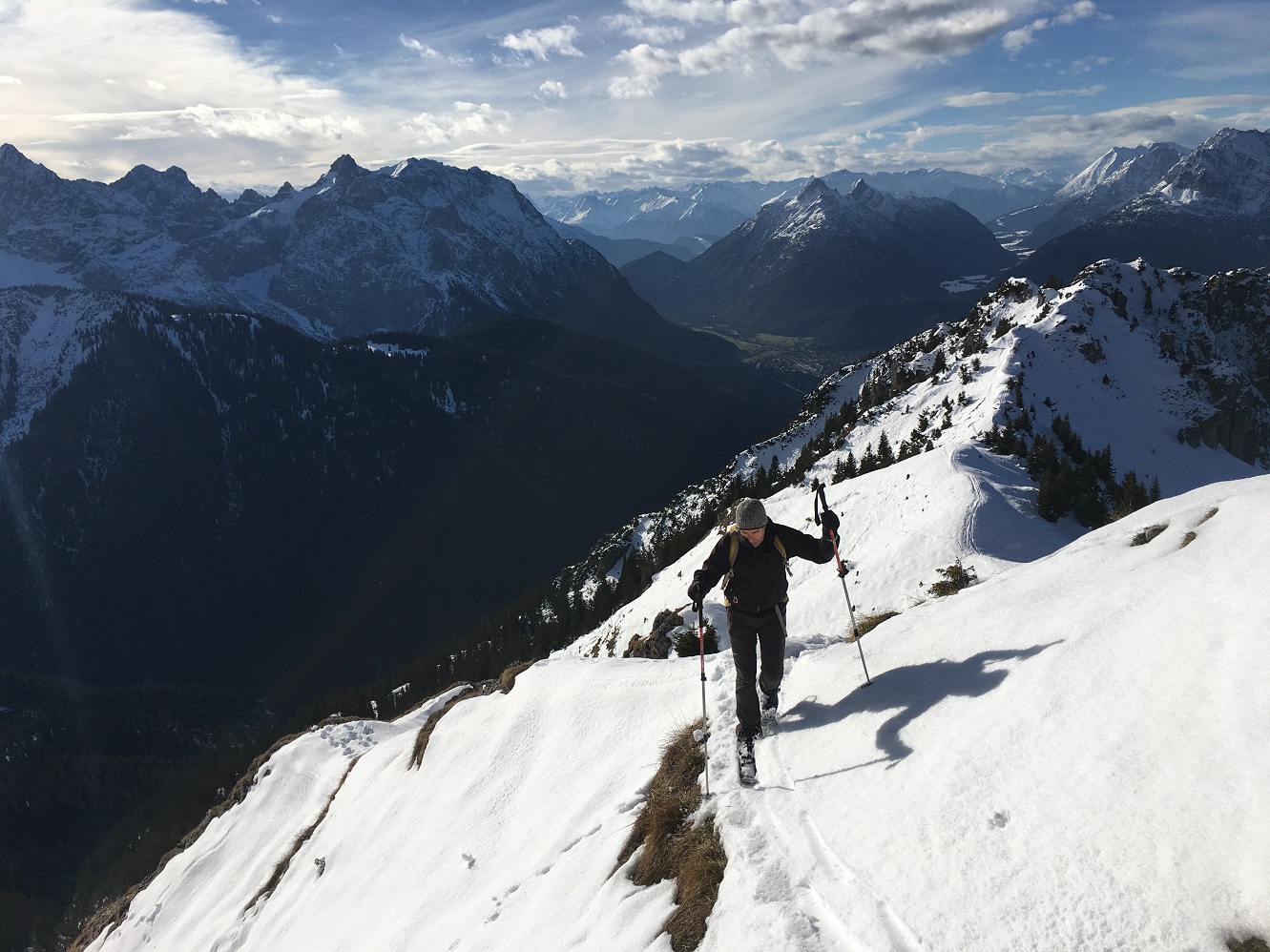 Tourenverhältnisse: Gut / Ski tragen bis Signalkopf dank guter Trittspuren / danach mit Ski über den Seinskopf / Abfahrt durch das Schöttlkar bis auf knapp 1400 m : teils Pulver und mit Deckel ... weiter unten feuchter Schnee