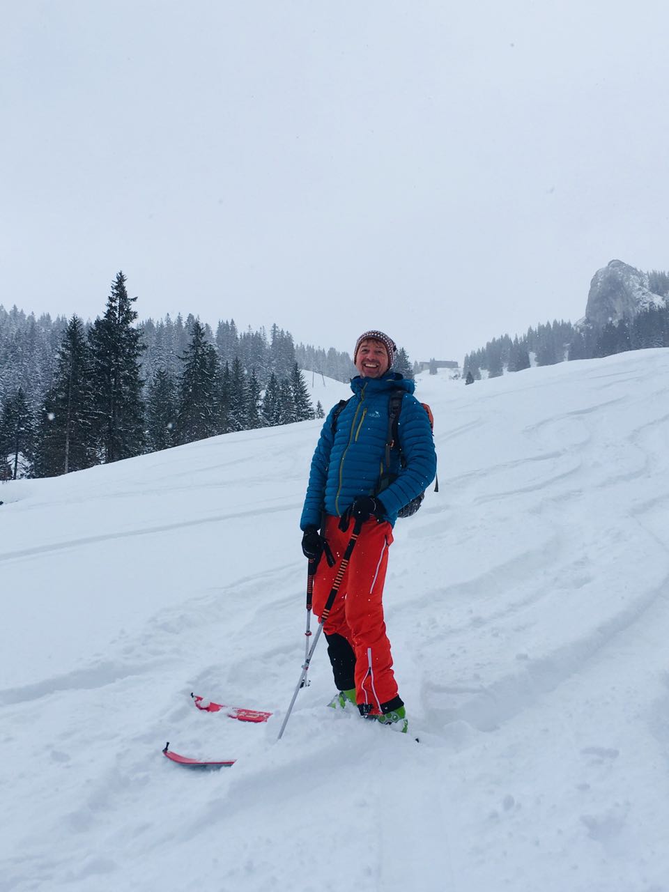 Tourenverhältnisse: Gott sein Dank hat es das Tauwetter nicht geschafft den Schnee ganz wegzuschlecken, so dass sich eine feste, wenn auch dünne Unterlage bilden konnte. Darauf hat es 20 cm bis in Höhren Lagen auch 30 cm schönen Pulverschnee - ein Traum!