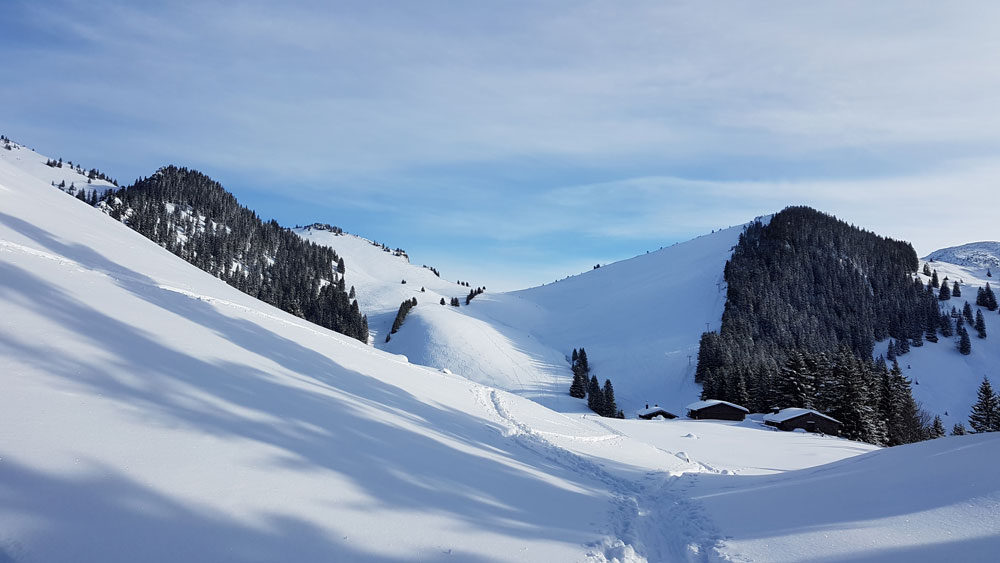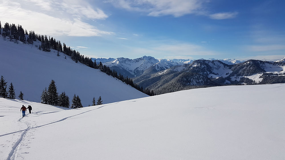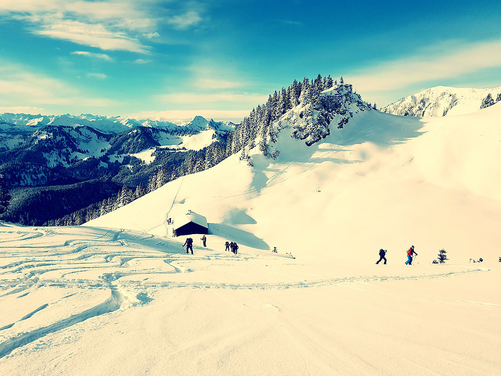 Tourenverhältnisse: Top Wetter und alles frisch verschneit. Nachdem der Wind aber wohl gestern drin war, war der Schnee im Untergraund teilweise ein bisschen windgepresst /(darafu dann ca. 10 cm ohne Wind) und daher nicht ganz so gut zum Fahren wie am Mittwoch - aber dennoch top!
