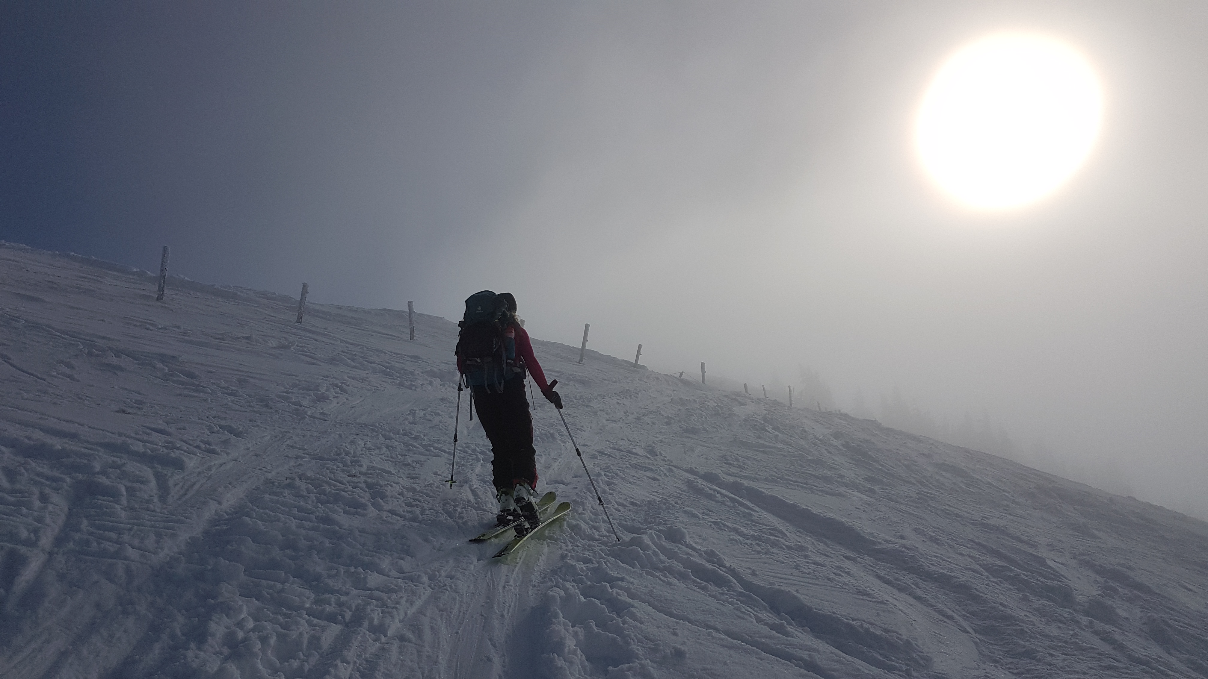 Wetter: Wir sind spät los, was heute ein Vorteil war. Gegen 13 Uhr kam im Gipfelbereich die Sonne raus.
