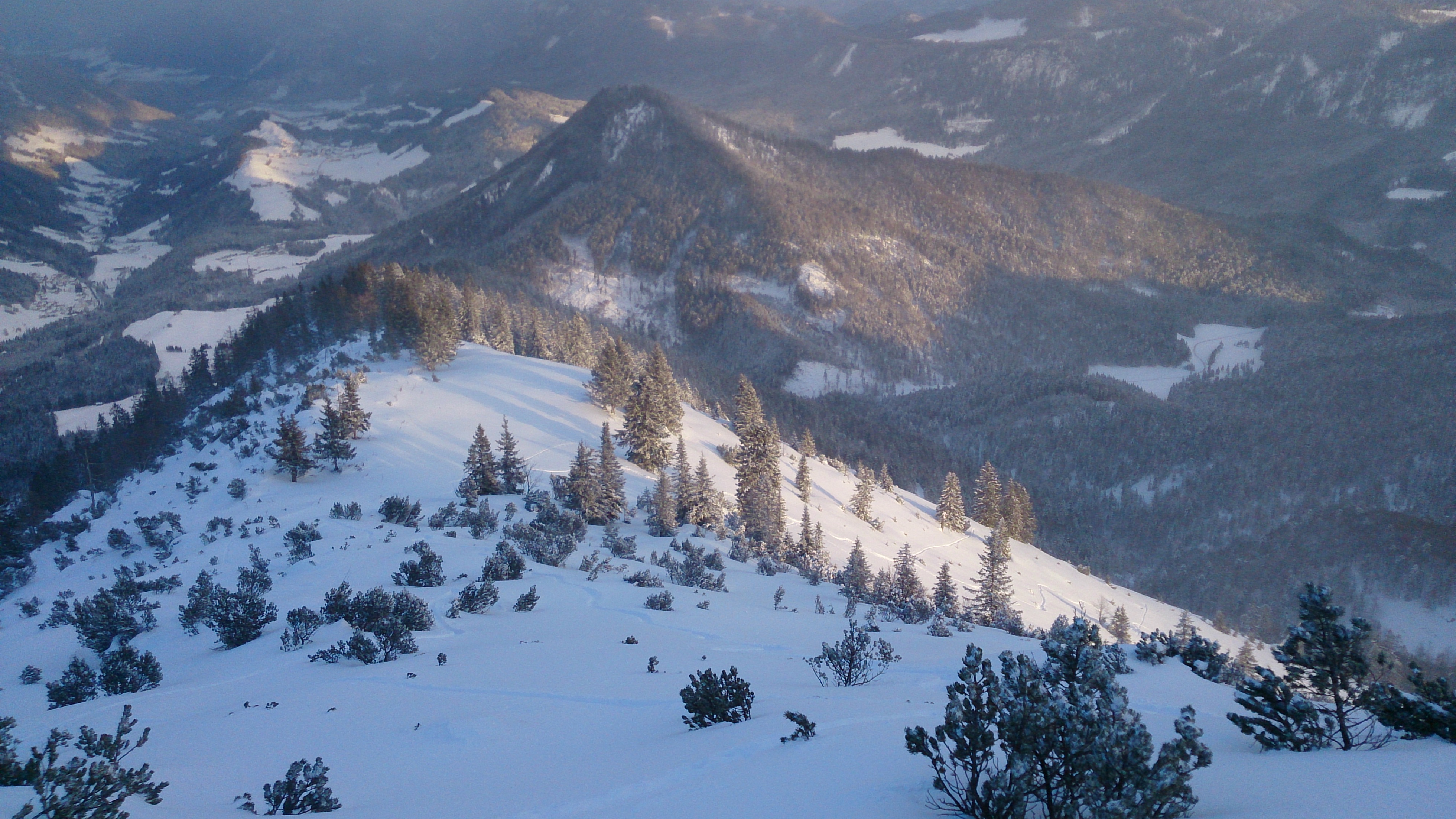 Sonstiges: bei der Anfahrt wären heute Schneeketten sehr gut gewesen; am Gipfelkreuz durch den Wind kaum auszuhalten