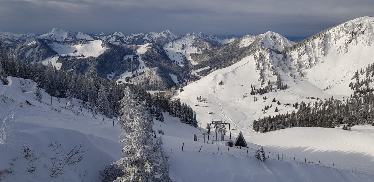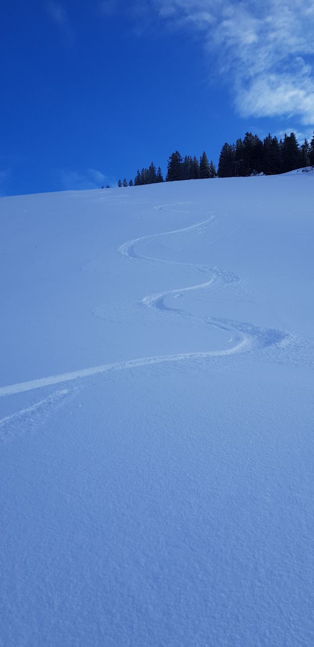 Abfahrt ganz links, Nähe Waldrand in ca. 20 - 30 cm bestem Pulver, nur zwei Spuren, dann Lochgraben.