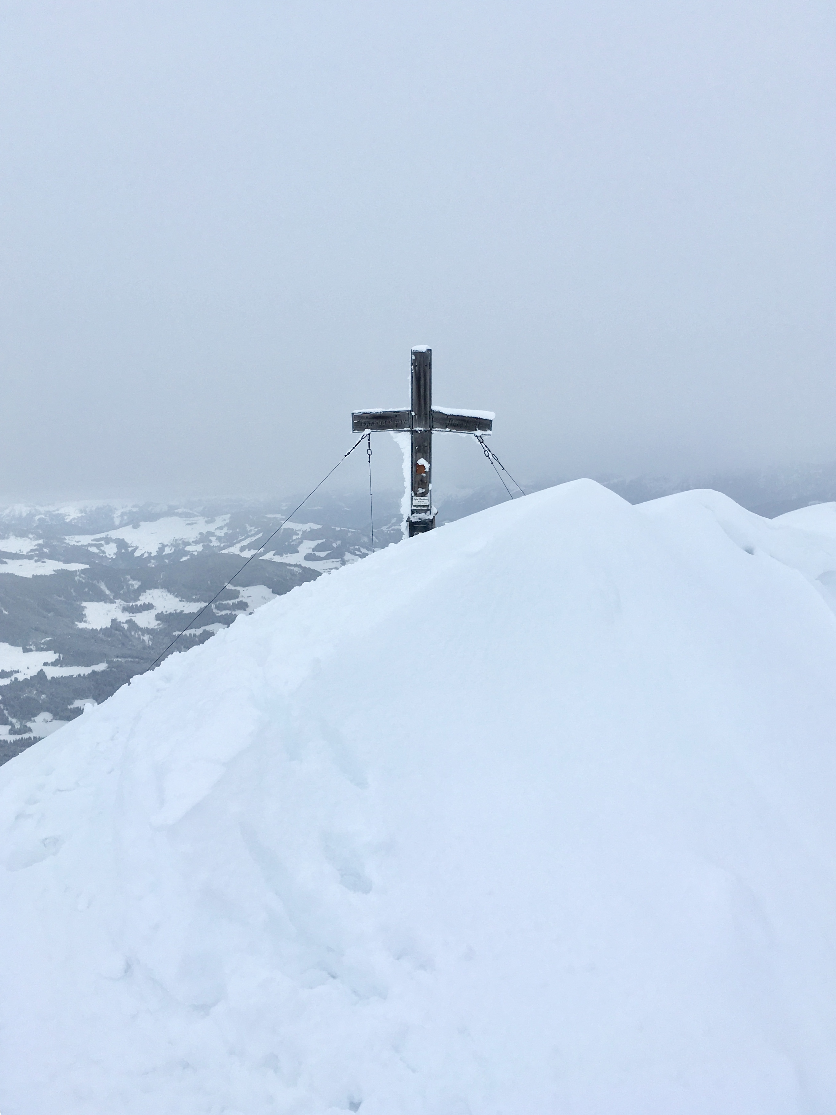 Tourenverhältnisse: Pulver bis unten genügend Schnee. Hohe Bewölkung, dennoch gute Sicht. Gipfel windig aber im Anstieg überwiegend ostseitig gut vor Wind geschützt. Weniger als 10 Leute unterwegs.