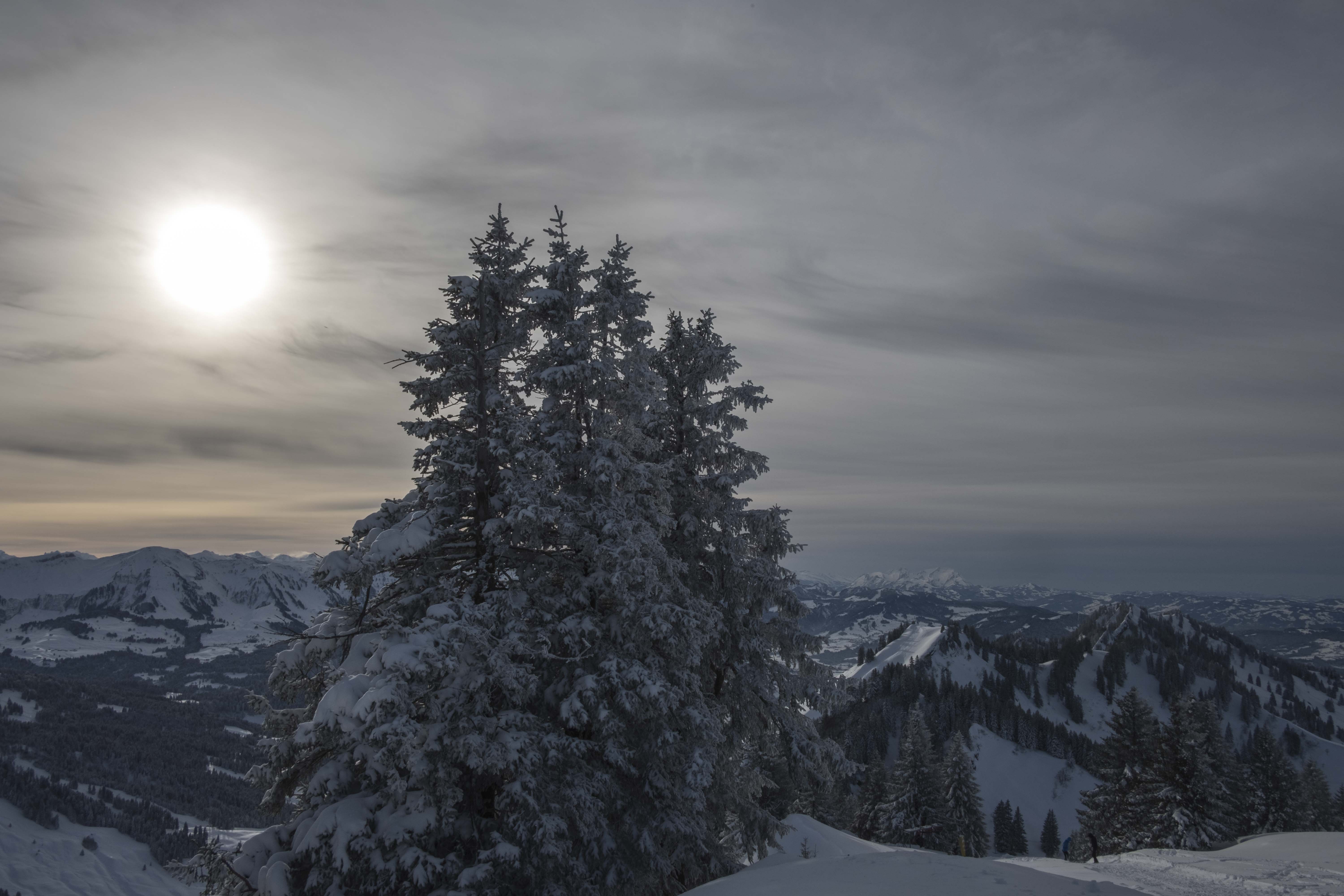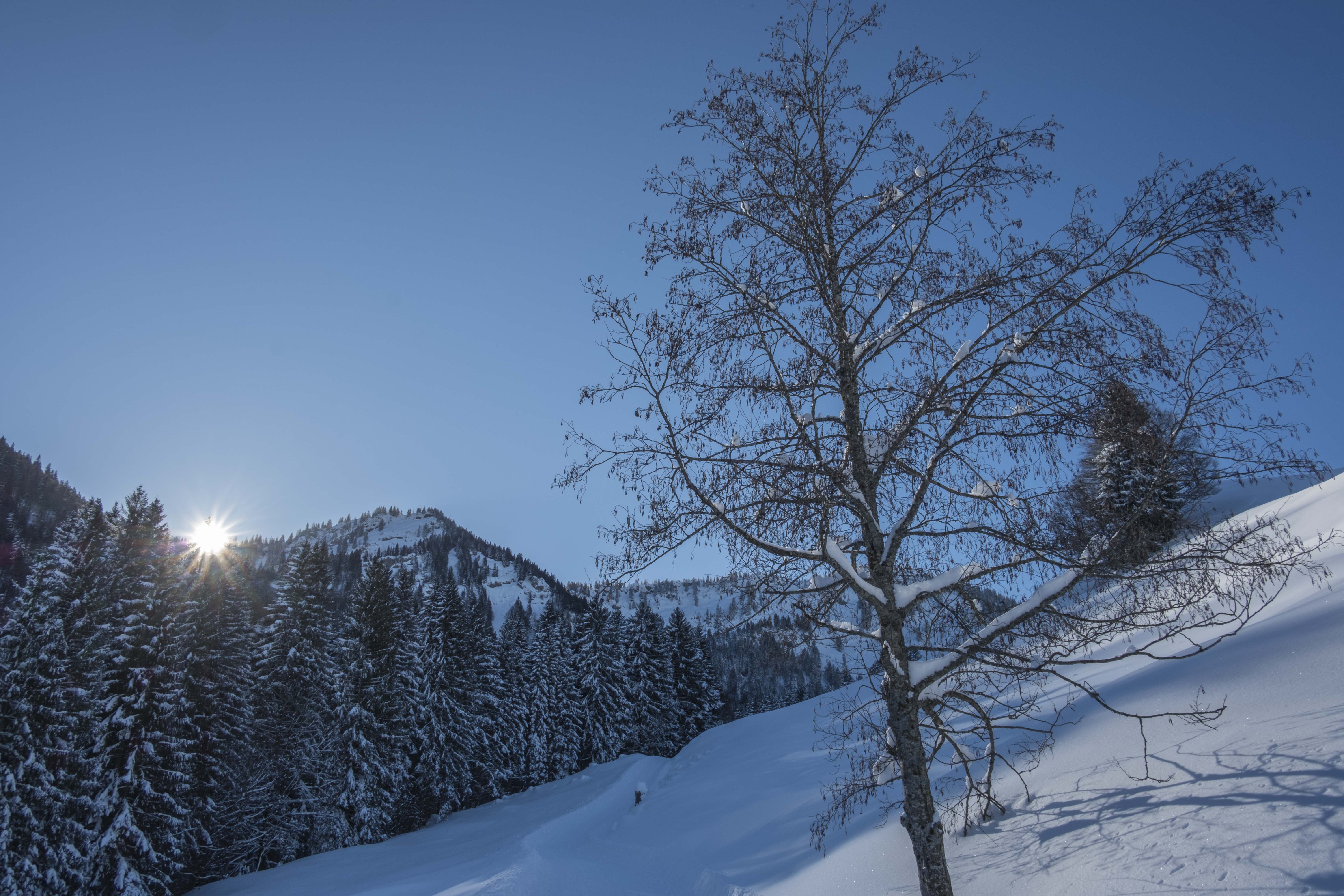 Tourenverhältnisse: Über Nacht gab es viel frischen Pulver in den Allgäuer Alpen. Wir folgten kurz der Rodelbahn in Richtung Hochgrat, gingen dann auf einem Alpweg zur Oberstiegalpe. Weiter auf Spur in langer Hangquerung durch Wiesen und Waldstücke bis es steiler in Richtung Falkenhütte ging. Zum Schluss auf der planierten Piste vom Hauslift zum Gipfel.