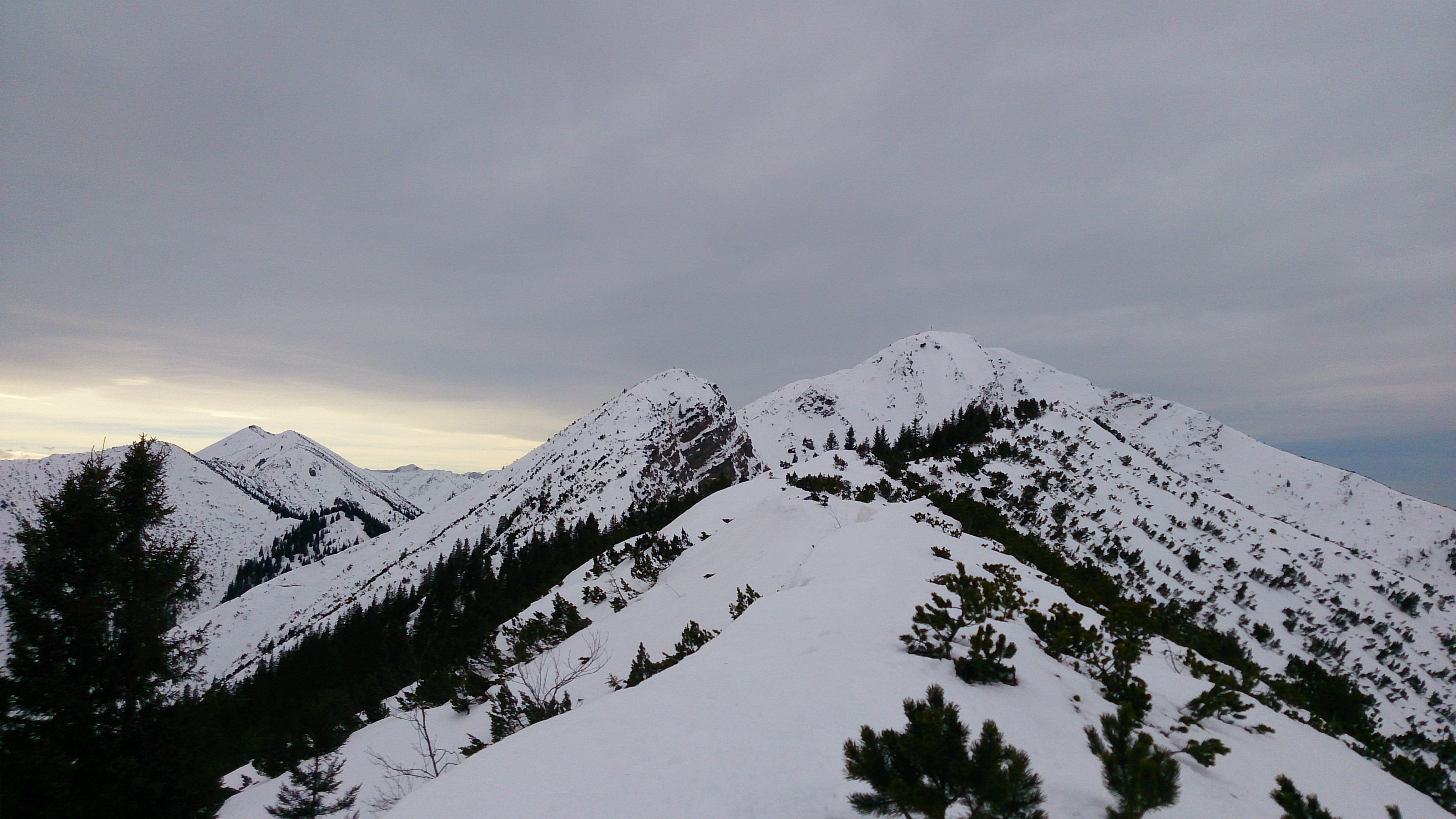 Tourenverhältnisse: auf der Route über den Kamm bis ca. 1.300 m kein Schnee (Gießenbachtal etwas mehr) - weiter oben alles Harsch