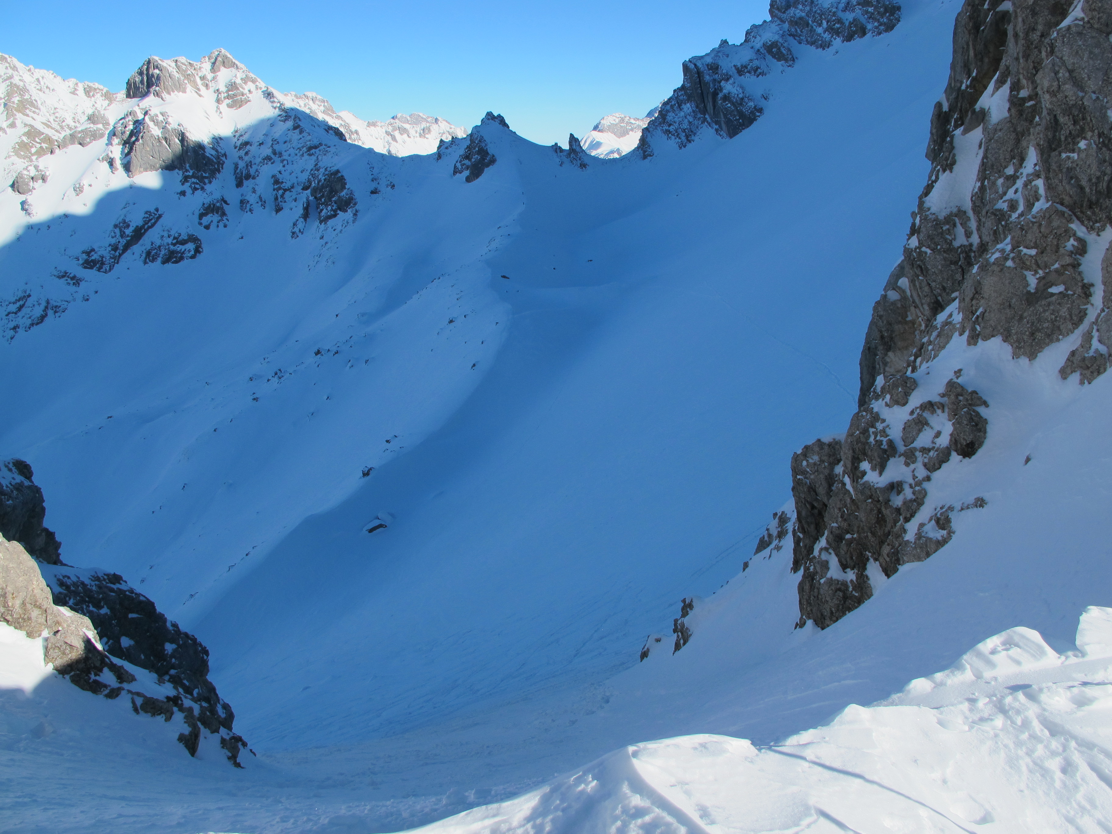 Blick ins Drachenkar: Hat schön pulvrig ausgesehen - allerdings auch eher geringe Auflage.