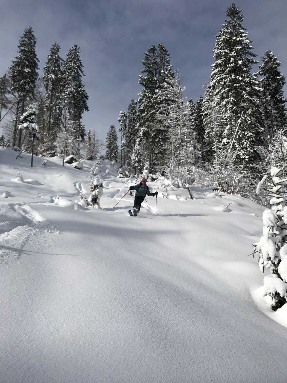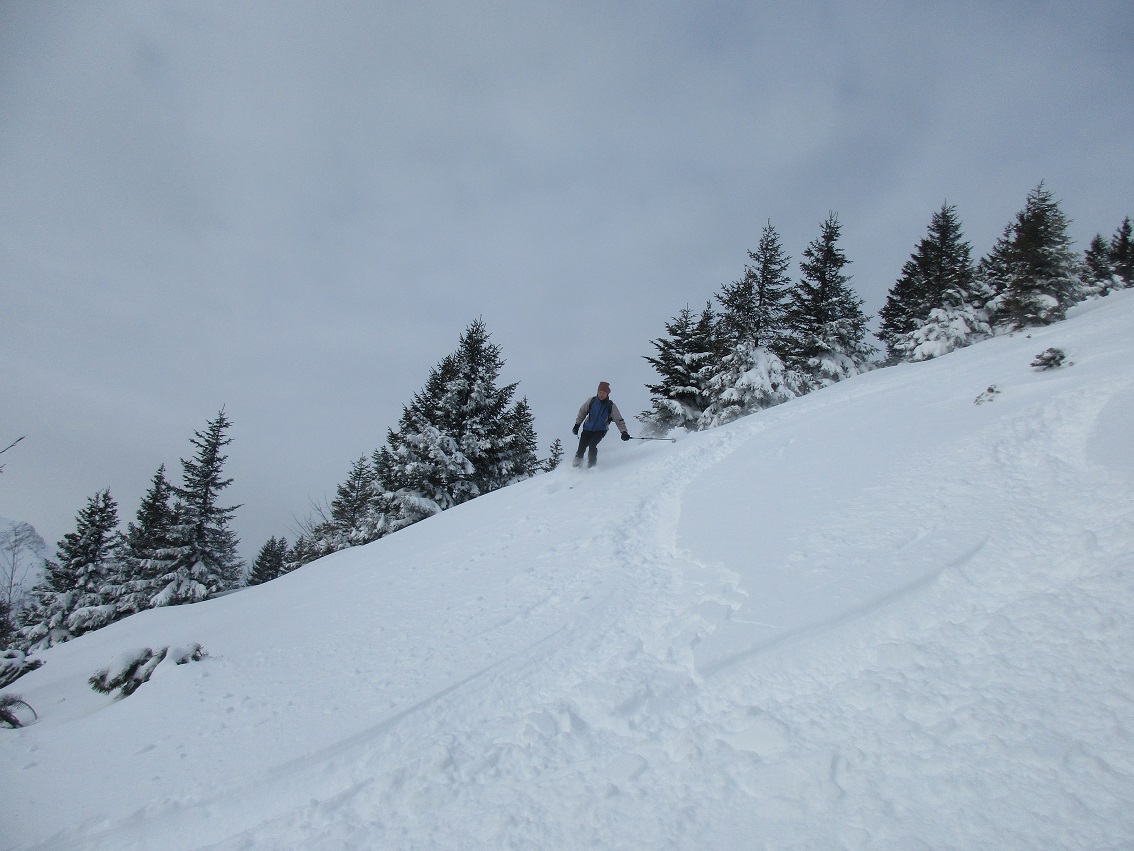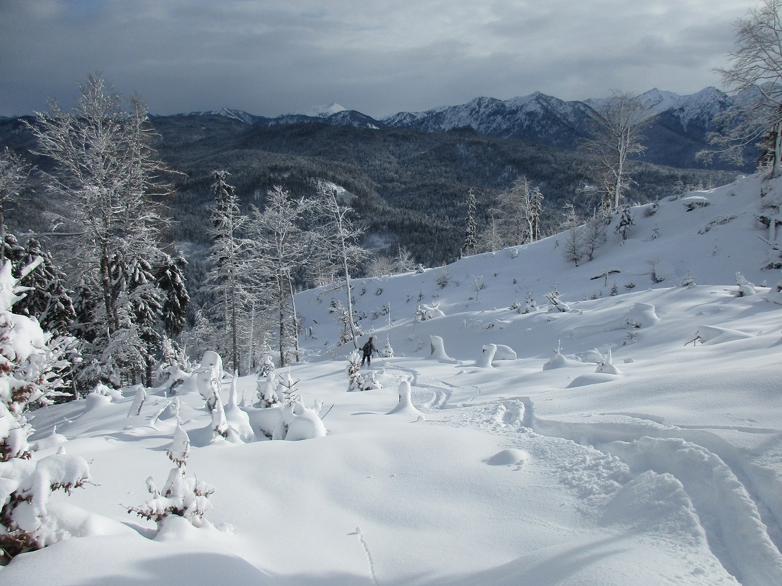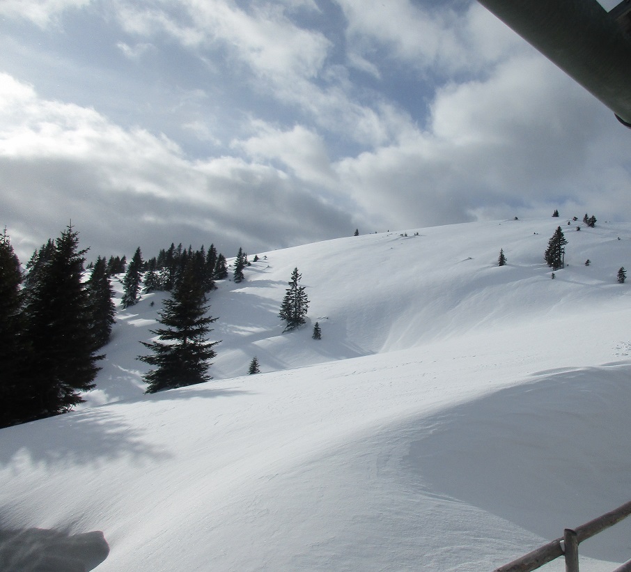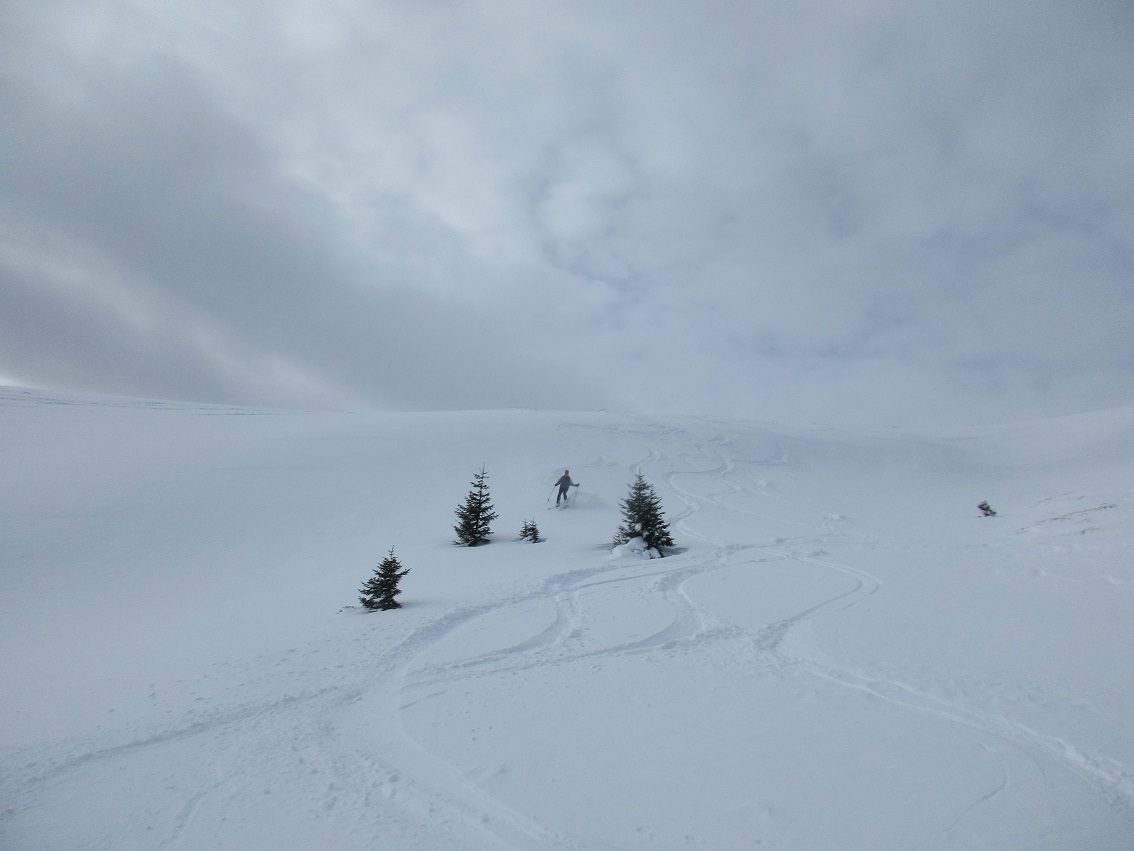 Tourenverhältnisse: Sehr gut / Pulver von unten bis oben / Latschen im Schlußhang endlich mal wieder verschneit / auch die Varianten und Abkürzer im Wald und in den Lichtungen waren heut problemlos fahrbar