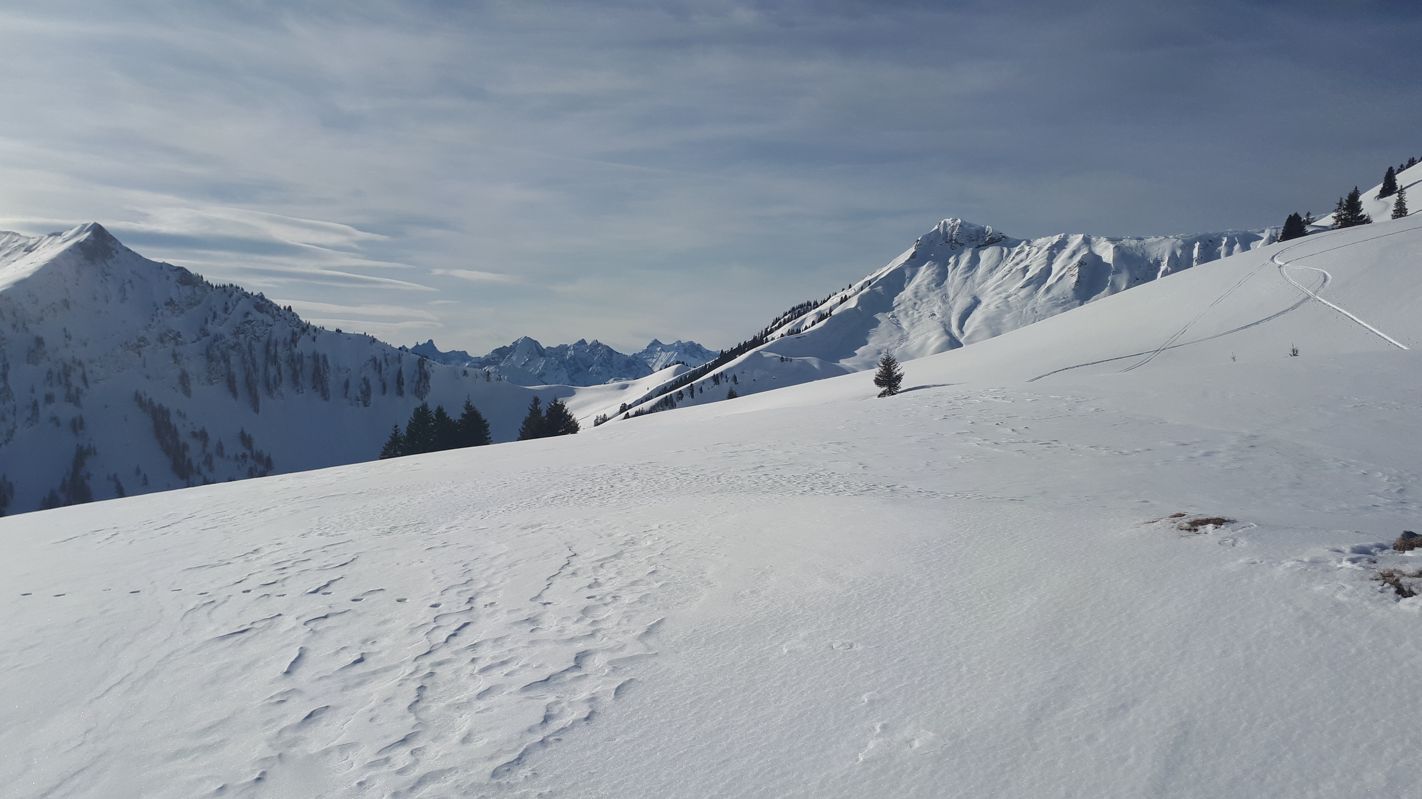 Gefahreneinschätzung: Am Rether Kopf und am Juifen hängen viele leicht überschneite Schneemäuler. Schwierig abzuschätzen ob und wann die kommen.