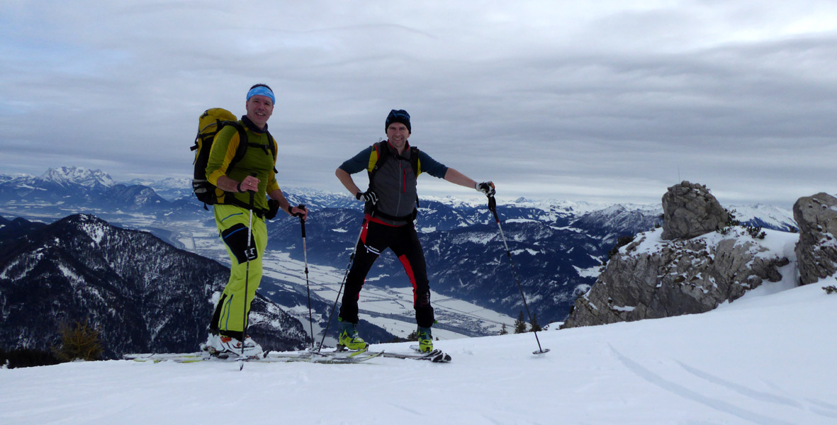 Tourenverhältnisse: Unterwegs auf dieser Tour: http://www.tourentipp.de/de/to…our-Rofan-Tirol_1721.html Schnee vom Parkplatz weg; unten Hinweis auf Steinschlaggefahr beim Rodelbahnaufstieg. Abfahrt: oben teils Reste von schwerem Pulver, oft einfach nur schwerer Schnee; immerhin alles aufgeweicht, kein Harsch. Aber etwas kraftraubend und arg bremsend. Auf der Rodelbahn konnte man dann flott runterrutschen. Tolle Aussicht ins Inntal!