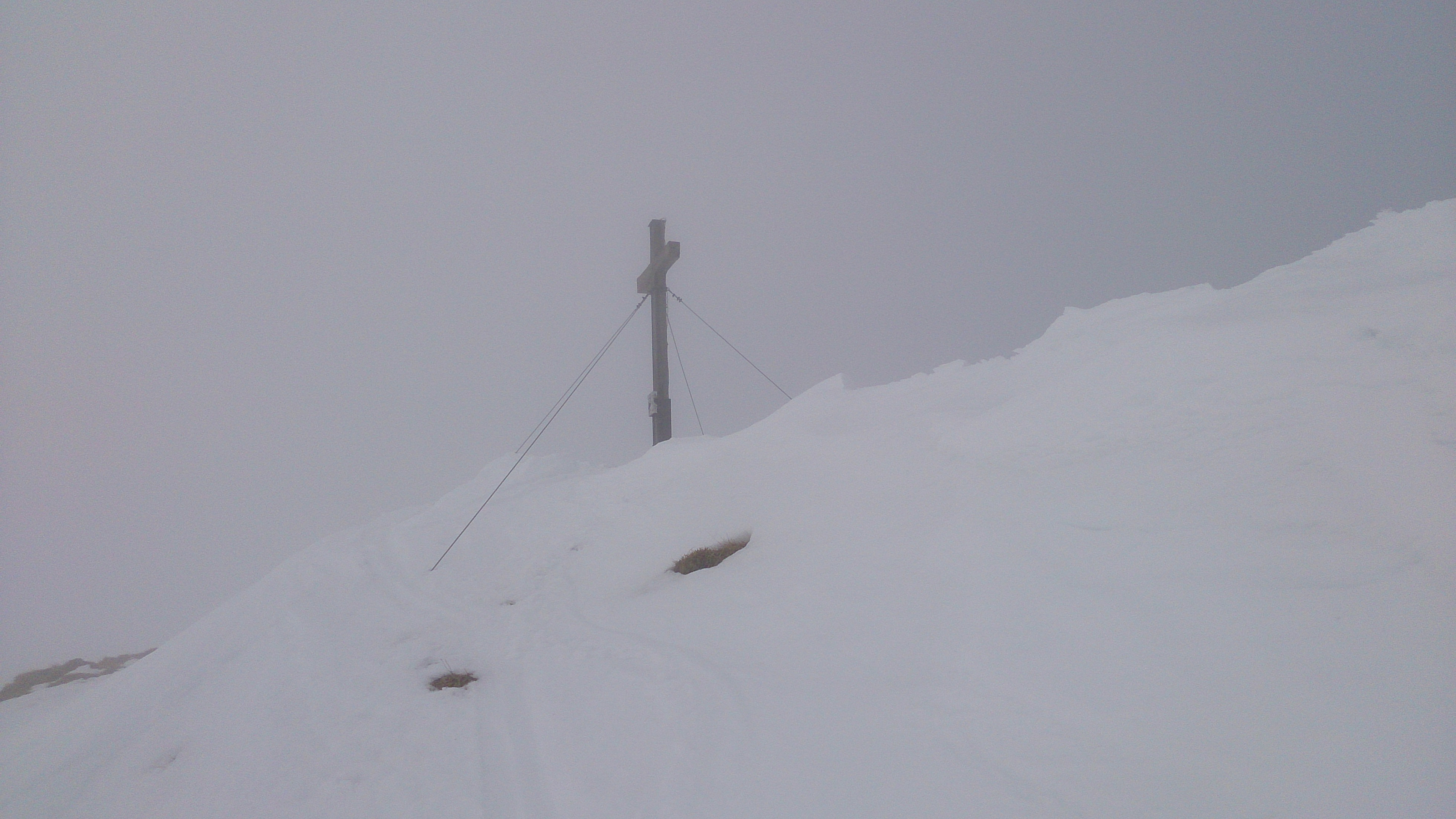 Am Gipfelkreuz heute leider keinerlei Sicht:
