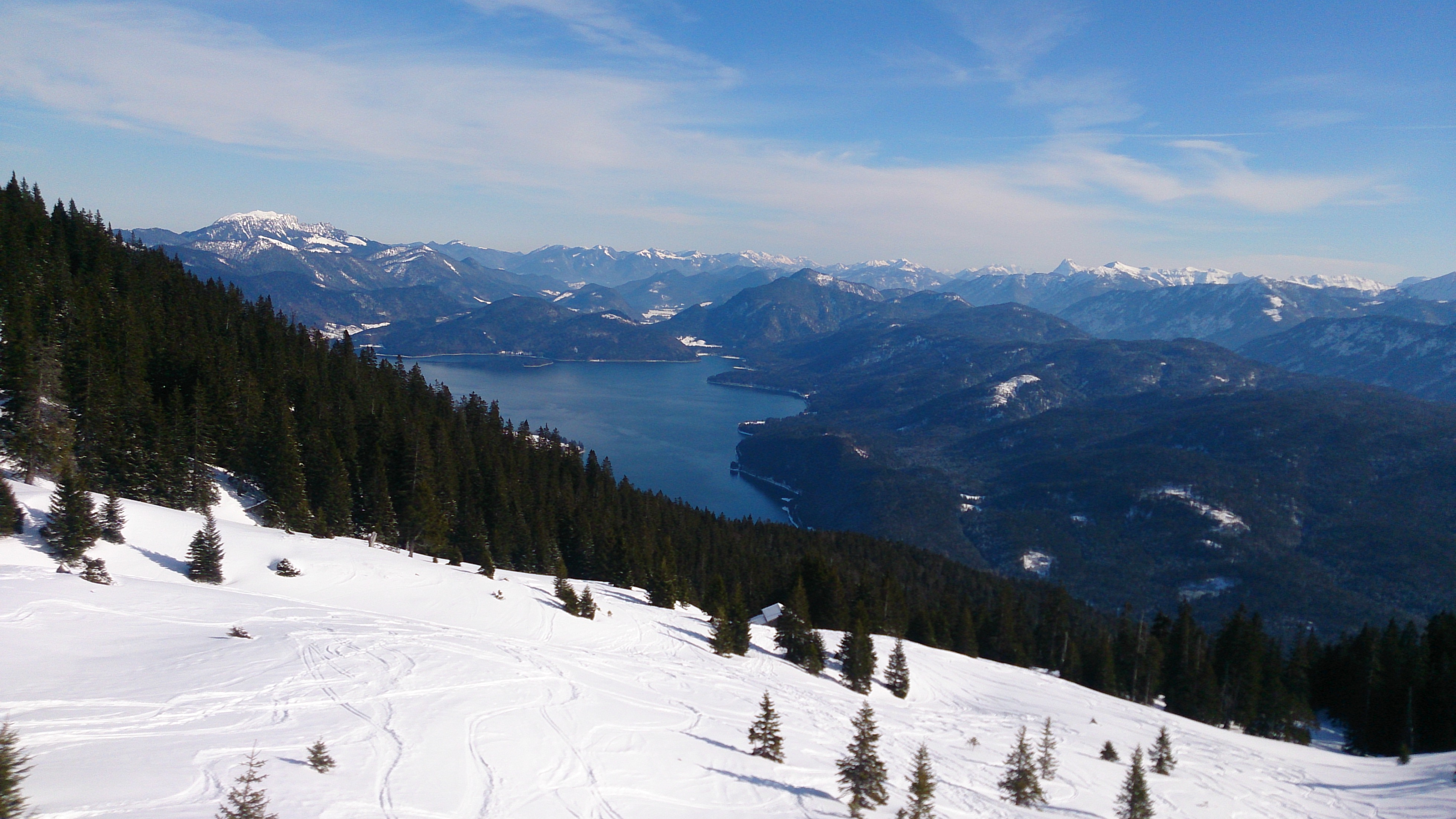 Beim Gipfelanstieg gibt es einen Walchenseeblick der Extraklasse: