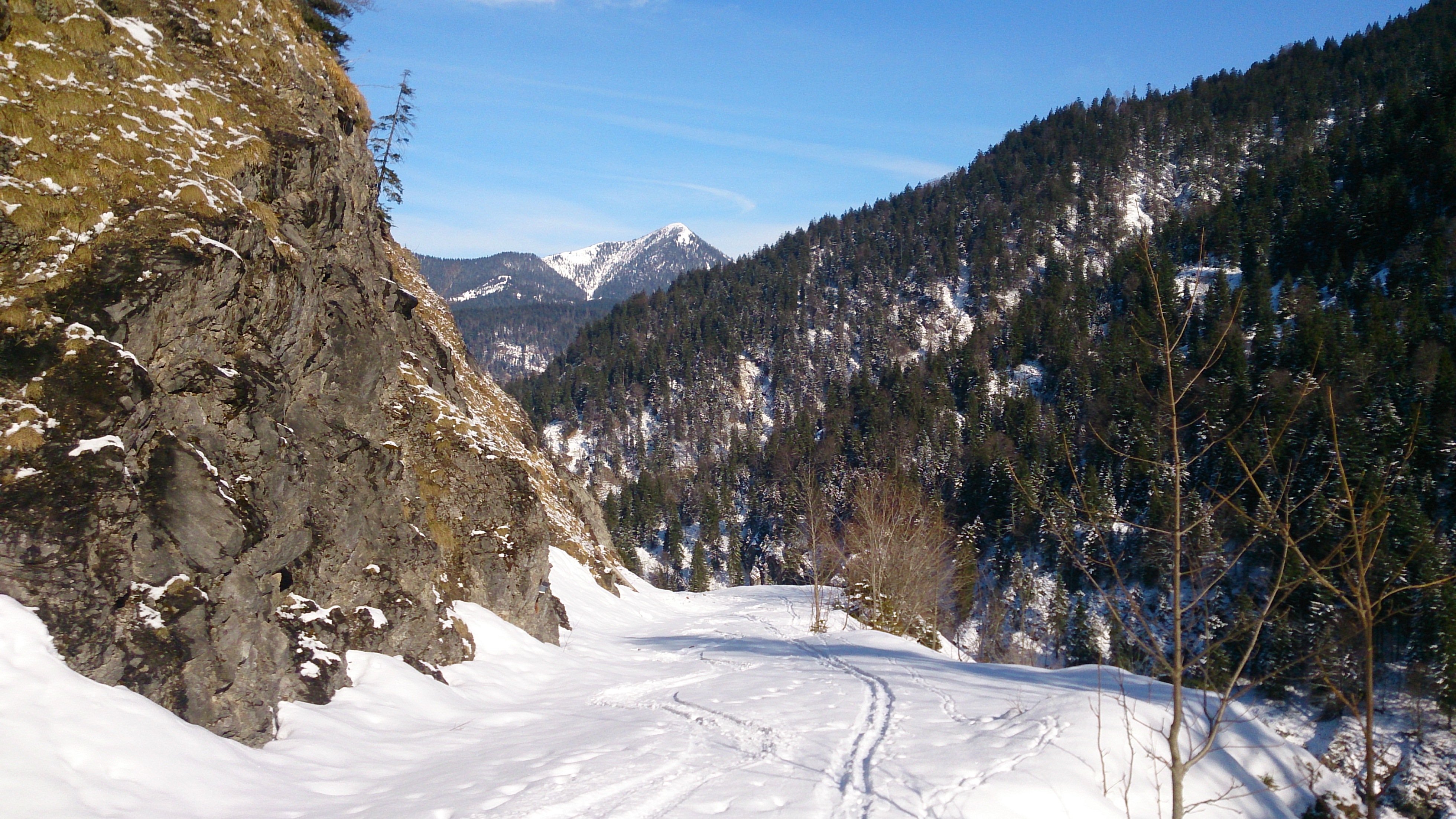 Gefahreneinschätzung: relativ gering; zwei alte Lawinenkegel auf der Forststraße nach Eschenlohe zeugen aber davon, dass diese nicht lawinensicher ist