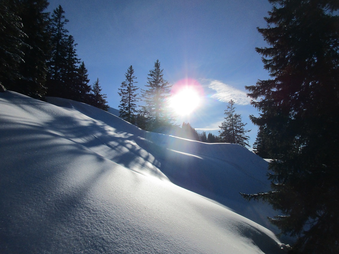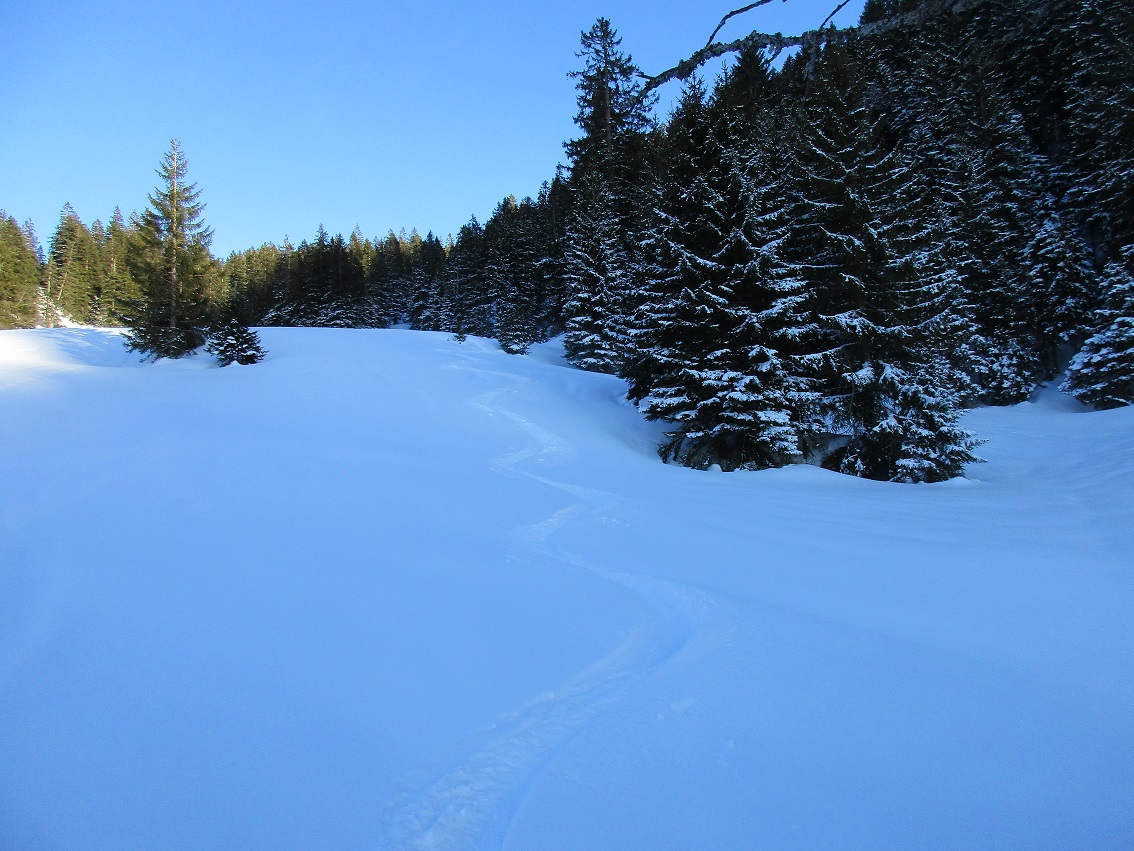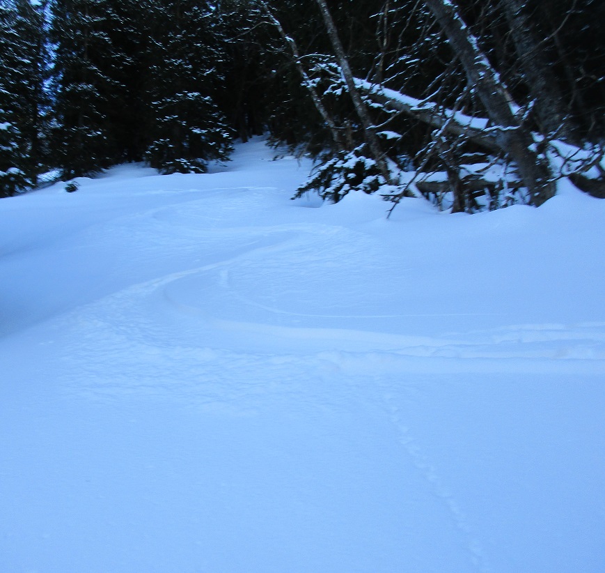 Tourenverhältnisse: Gut / auf den unteren Freiflächen genug Schnee / weiter bis ca. 1000 m besser über den Forstweg aufsteigen, Abkürzer nicht gut / danach hat's gut Schnee / Pulverschnee / Abfahrt bis Kaltenbrunnen 1A / Platz für eigene Spuren / am Forstweg ein paar Steine : gut sichbar und gut umfahrbar / ab 950 m abwärts Rückarbeiten ( siehe vorletztes Bild )