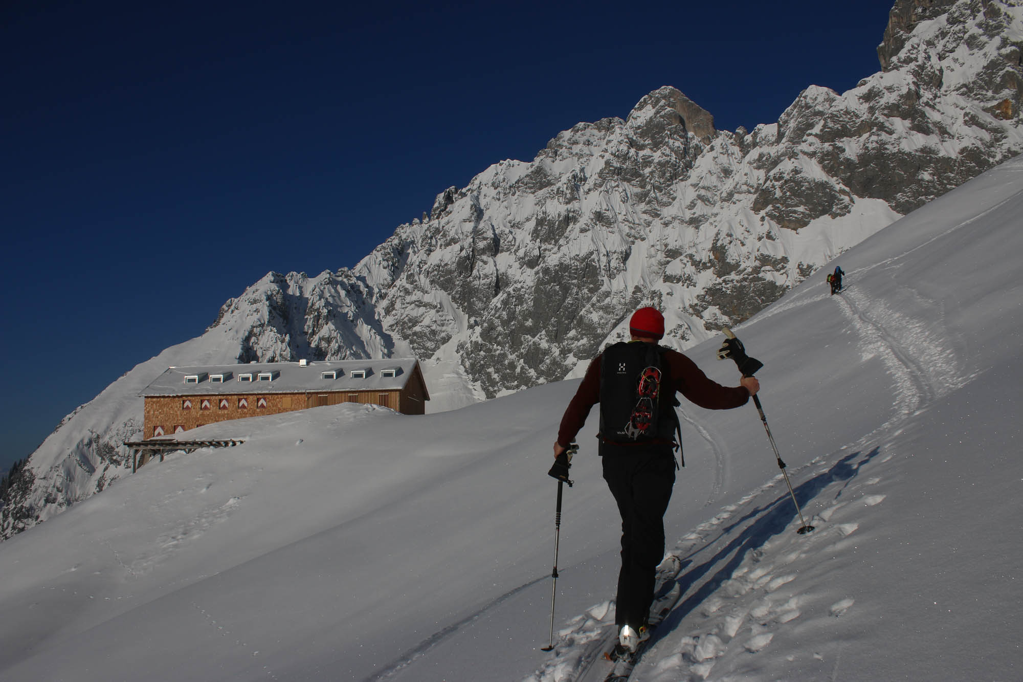 Tourenverhältnisse: Traumtag! In den oberen Teilen der Abfahrten gesetzter Pulver. Weiter untenlockerster Pulver auf ruppiger Unterlage. Im unteren Tei, der Südseite des Zahmen Kaiser muss man kurz mal die Ski tragen. Insgesamt aber endlich einm ausreichend Schnee für diese großartige Tour.