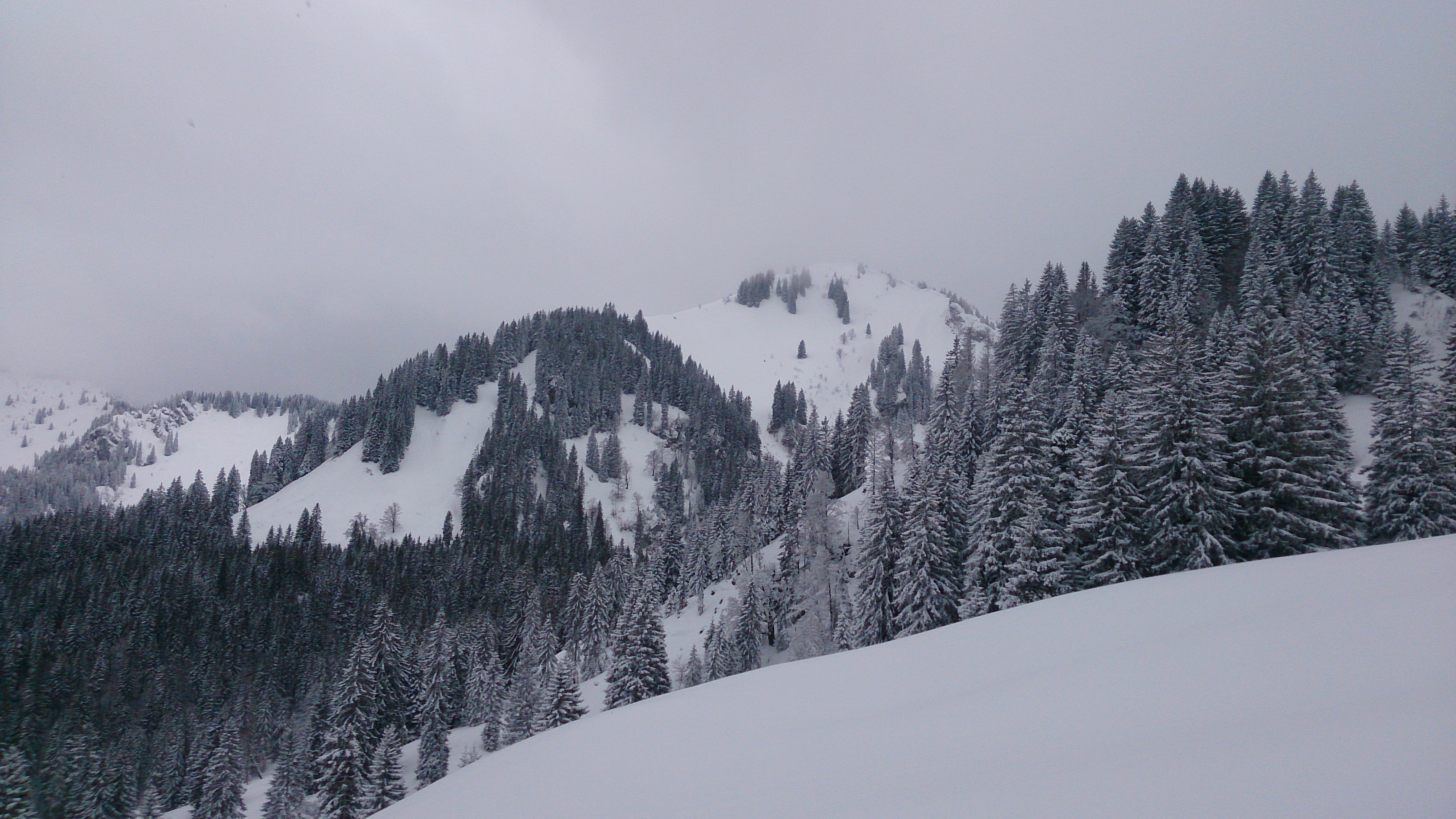 Sonstiges: Skitour bei Dauerschneefall. Von unten weg gibt es ordentlich Schneeauflage und nach oben hin wird es noch mehr. Die paar Fußgänger / Rodler dürften heute ihre Probleme mit der Abfahrt gehabt haben, habe den Weg neben dem Schiffbachgraben noch nie so wenig eingefahren gesehen - sonst ist der ja meist eher schnell. Den Gipfelhang durften wir sogar spuren. Zum Glück zog es für die Abfahrt kurz auf, so hatten wir einigermaßen Sicht. Leiwander Pulver. Insbesondere oben war es ziemlich kalt mit dem teilweise starken Wind.
